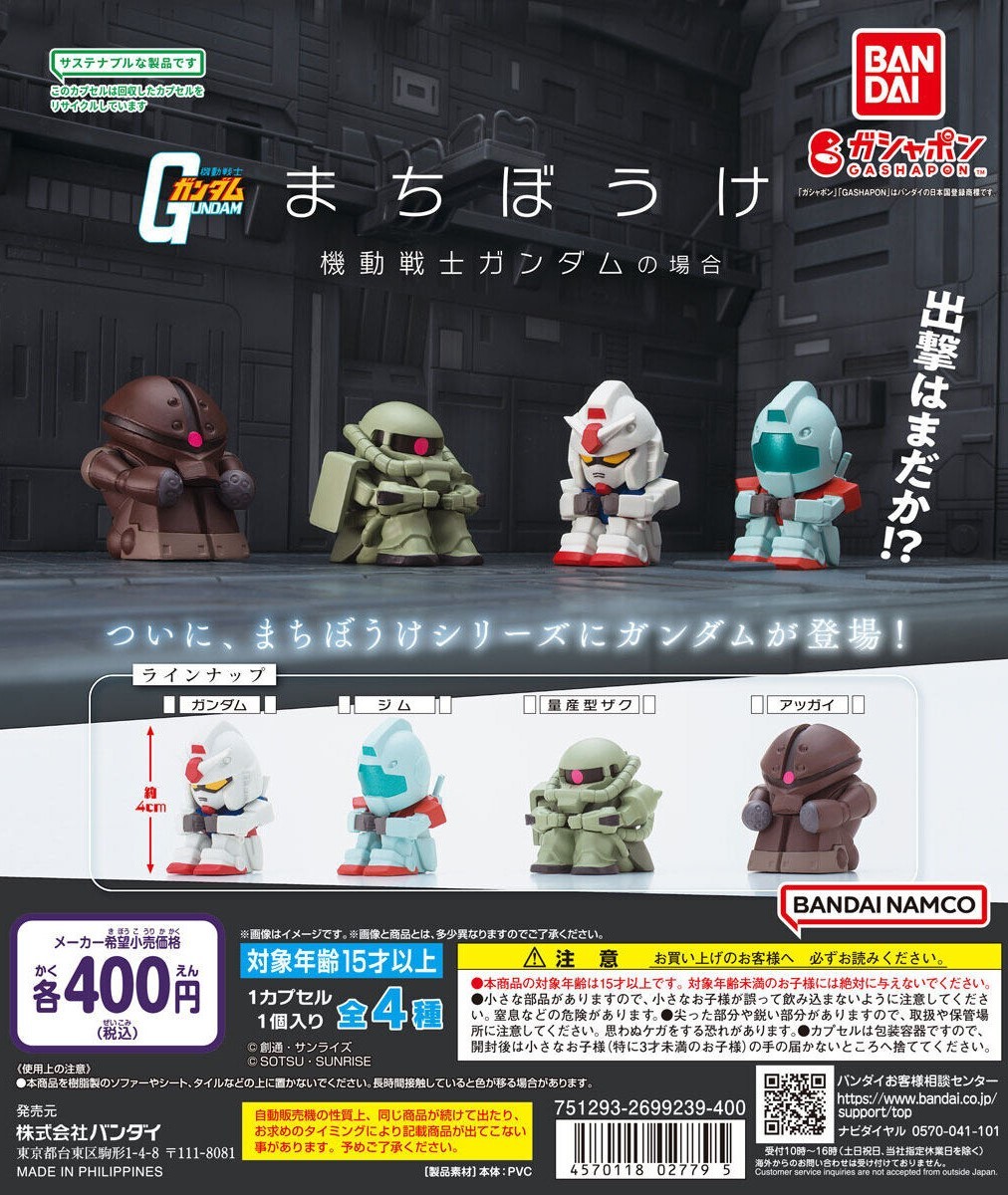 由日本萬代公司轉蛋玩具品牌 GASHAPON 發行、人氣的等待中(まちぼうけ)系列這次要推出來自《機動戰士鋼彈》的新作「等待中的機動戰士鋼彈」,一共有四種款式,參考售價為一轉 400 日圓,預計於 2024 年 03 月第三週開轉。