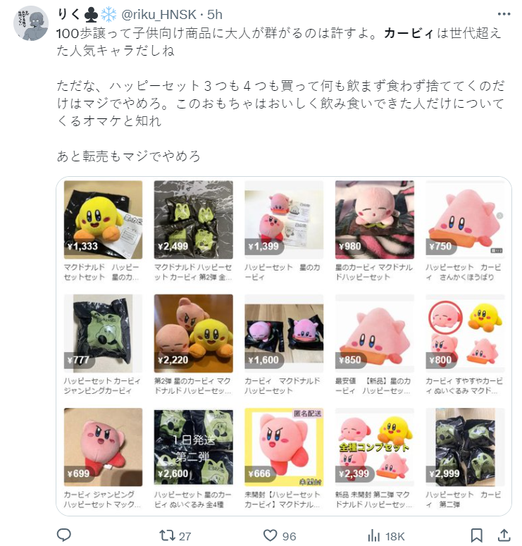 而今日 ( 3/1 ) 是第二彈開賣之日,乘著上一波熱潮,這次另外四隻完全掀起日本的「卡比戰爭」,X 上有賣到現寶的人,也有人苦喊所在地區已經被買光光了,這也在 X 上成為趨勢話題。