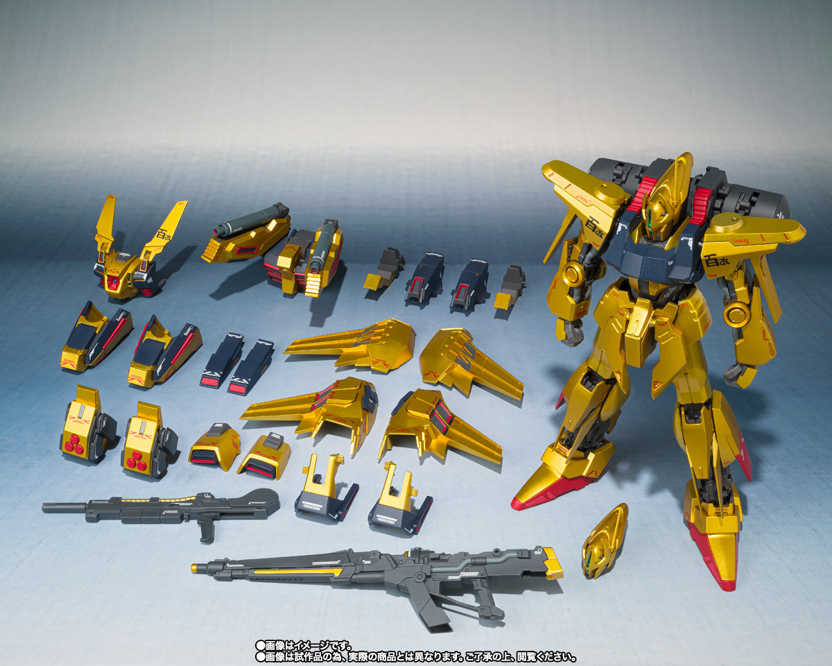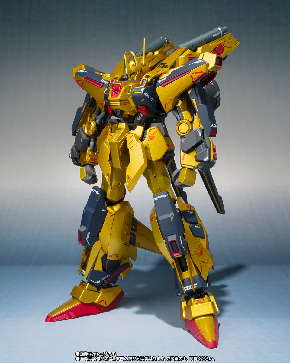 經手三位設計師的夢幻機體這次再度由 Katoki Hajime 重新詮釋監修推出完成品模型「METAL ROBOT魂(Ka signature)全裝甲百式改&百式改」,同時保留了原設計的獨特造型與作為玩具的收藏價值與可玩性,全機運用豐富的金色、消光黑與機身標誌印刷表現特徵的金色裝甲,雙臂與下半身更採用合金零件製作可動骨架,不僅具備把玩時的重量感也能再現帥氣的戰鬥姿勢。