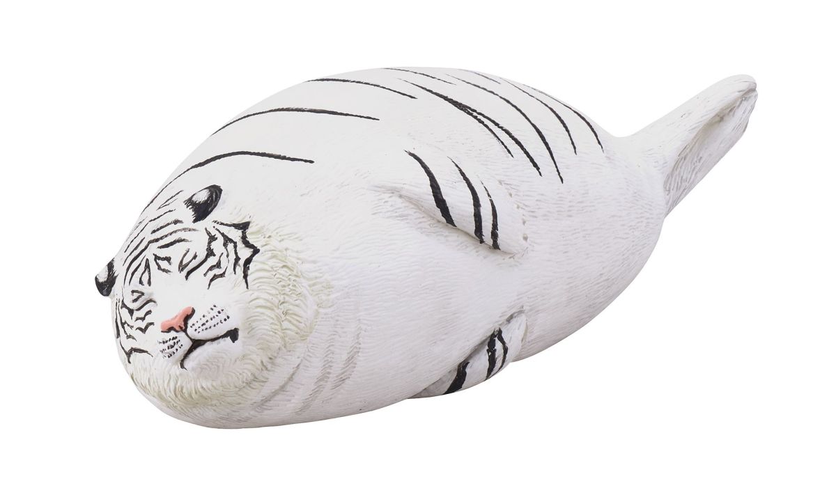 在大量作品中都作為兇猛的象徵之一、更在許多神話傳說當中佔有一席之地的老虎,現在正式變成毫無殺傷力的可愛動物!這次 T-ARTS 百變老虎的商品名稱 トラんすふぉーむ 即是來自英文的 Transform(トランスフォーム),把字首的 トラ(虎)獨立出來並進行延伸,以老虎變身為各種動物的概念進行設計,包含熊貓、兔子、松鼠、海豹四種形態,除了一般的橘黑配色之外,還推出了白虎主軸的變體版本,尺寸為 4~7.2 公分左右,最大的就是官網也十分強調的海豹形態,圓滾滾的線條實在太可愛吧!