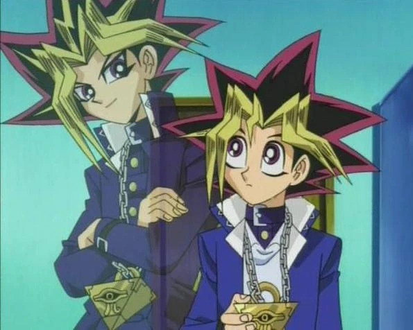 而主角武藤遊戲解開爺爺送的千年積木後,古埃及法老王「亞圖姆」的靈魂進入他的心中,像這樣主角有著兩個靈魂的設定,更是讓人覺得帥到不行。