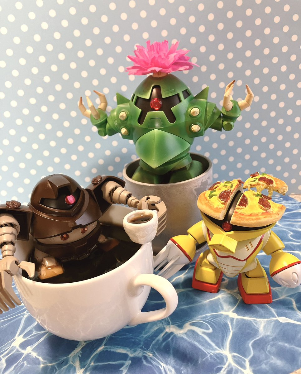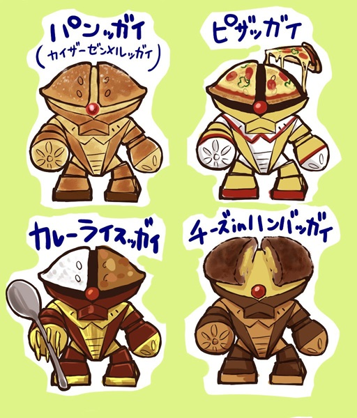 ▼ 推主將鋼普拉機體結合美食的插圖。