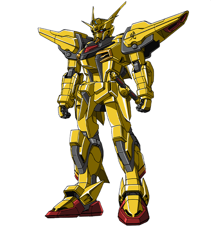 ORB-01 曉鋼彈是歐普國營企業「曙光社」建造的歐普軍 MS 旗艦機。此機依據「GAT-X105 攻擊鋼彈」的資料進行設計,機體輪廓非常相似,並同樣採用類似「攻擊者背包」的背包換裝系統,能替換大氣圈內使用的「大鷲裝備」和宇宙空間用的「不知火裝備」。曉相當重視防禦系統,全機耀眼的金色塗裝並不是裝飾,而是能反射光束的鏡面裝甲「八咫鏡」,即使受到戰艦搭載「陽電子砲」射擊也幾乎毫髮無傷。然而此機的建造費用極高,導致 C.E.71 年原型機完成後計畫就遭凍結,但曙光社仍祕密地以最新技術完成它。