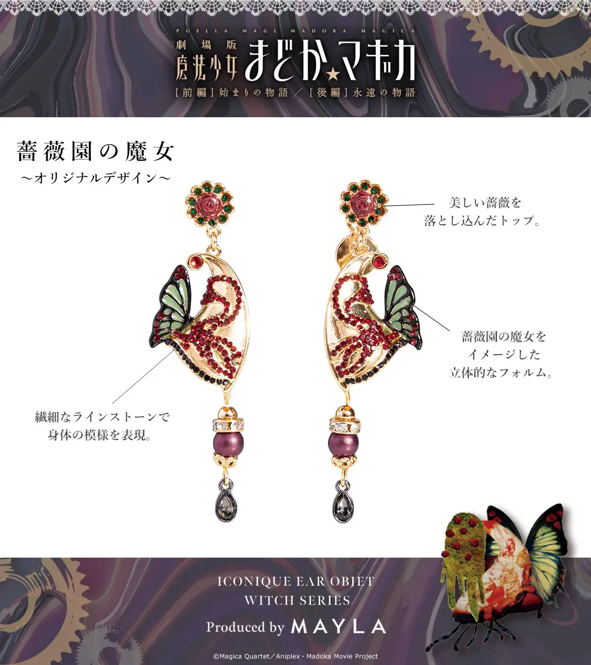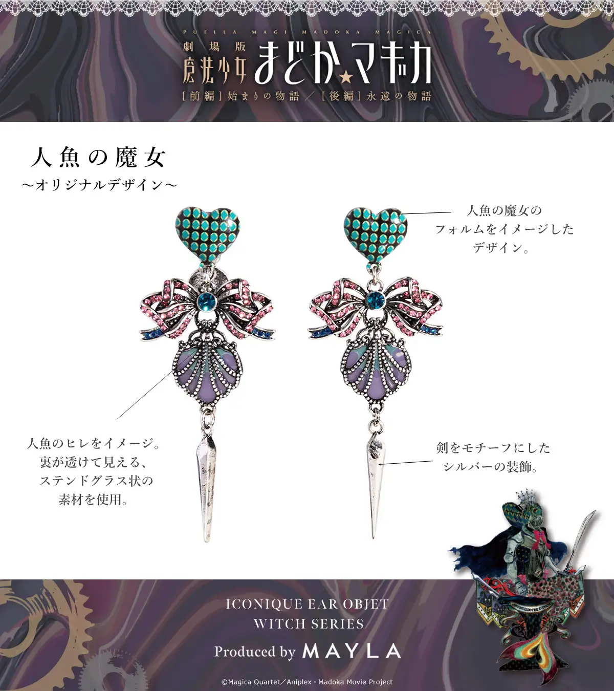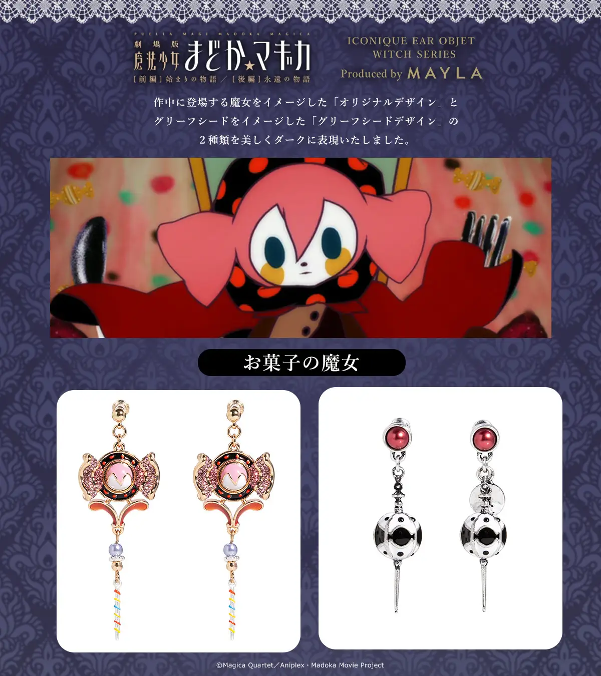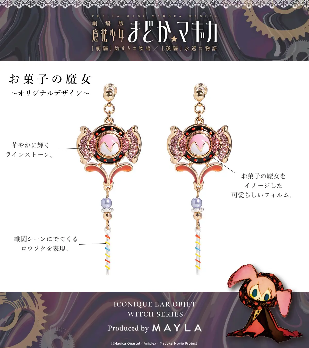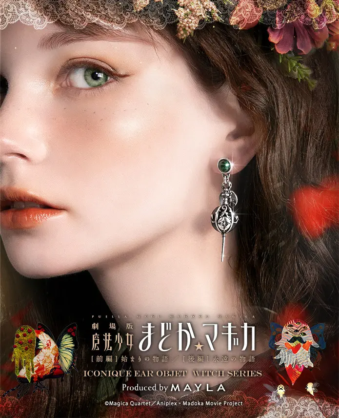 曾與《SPY×FAMILY 間諜家家酒》、《初音未來》以及《新世紀福音戰士》聯名的日本大阪女鞋品牌 MAYLA,先前推出的樣式都受到消費者好評。這次宣布繼先前的聯名鞋款後再次與《魔法少女小圓》 合作,改以魔女為靈感設計的造型耳飾。目前已可於官網訂購。
