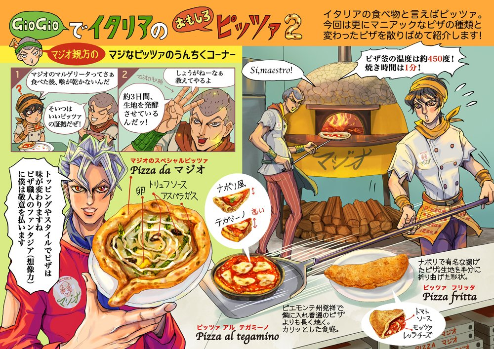 可以看到 Zincite 是以 JOJO 各部的人物來講述義大利各種不同的飲食文化,像這篇就是講述 Pizza 在當地各種不同的口味,搭配漫畫中的人物對話,很容易就讓人理解這些主題所帶來的內容。
