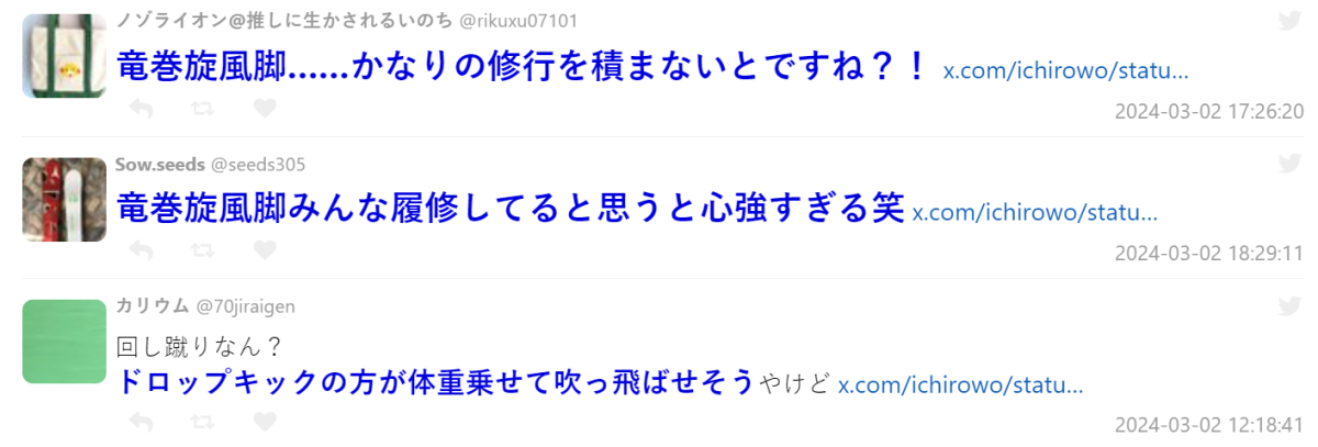 只能說各位網友真的很認真,這樣的事情也搞得像是科學訓練一樣的討論程度,當然像推主想學「龍捲旋風腳」好像也不是真的不行,但真的練成的話,感覺還是要去武打班才有機會吧 www。