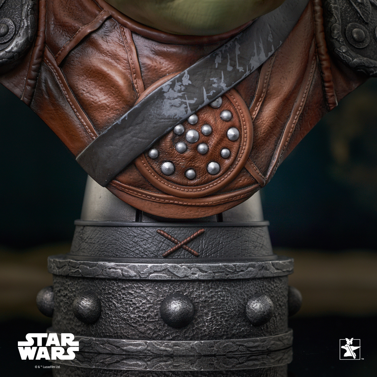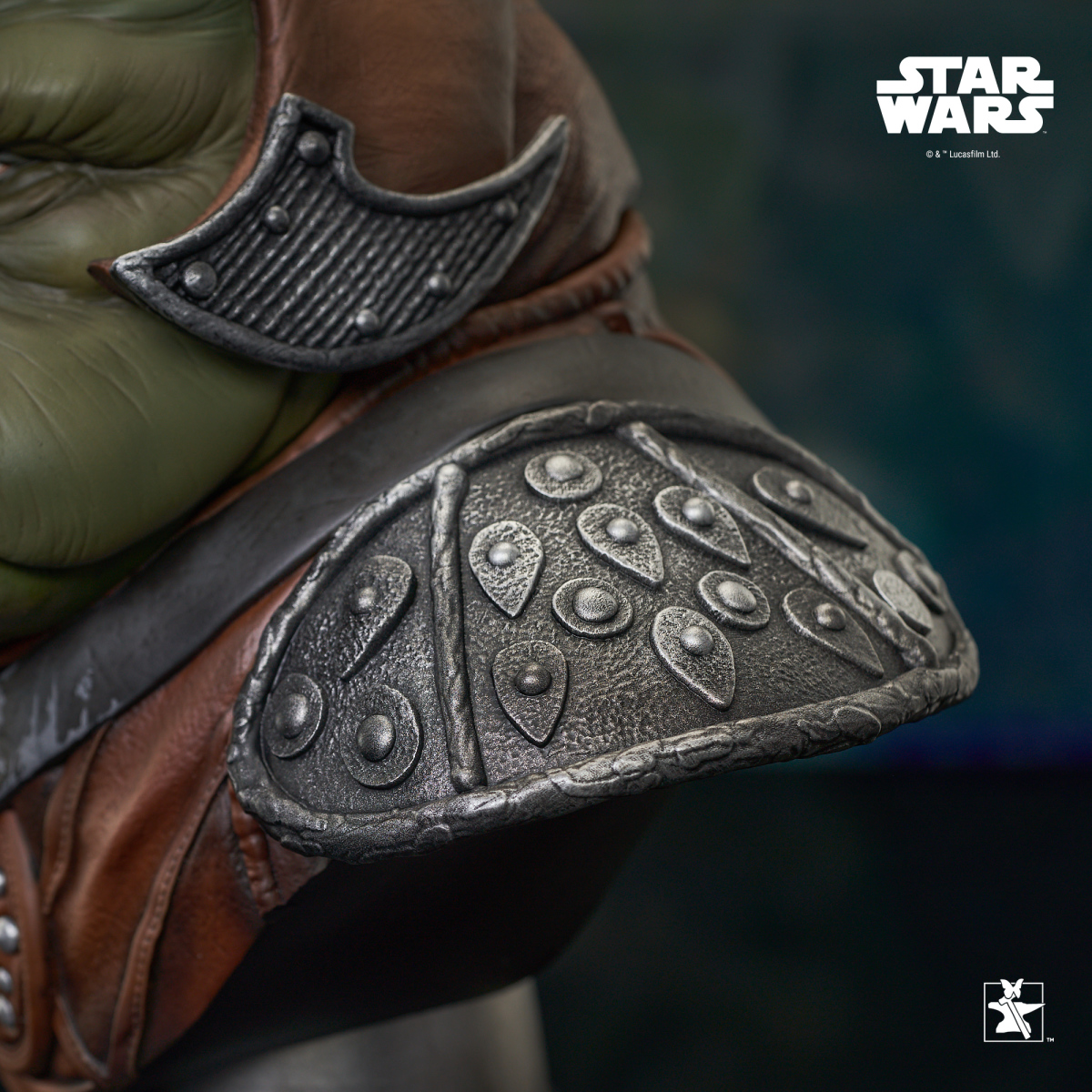 本次以 1/2 大比例胸像化的「加莫守衛」依照《絕地大反攻》之電影設定再現其飽滿圓潤的線條與厚重的裝備細節,臉部不只形塑出綠色肌膚的豐厚肌肉與細紋,朝天的豬鼻子、嘴巴,以及獠牙、犄角皆施以極具生物感的漸層塗裝,充分展現出蓬勃的活物氣息,而在褐色服裝、鐵灰色護甲分別表達出皮革、沈重金屬的質感,加上精美製作的皺褶刻畫與舊化處理,真的是一款超讚的豬兵!