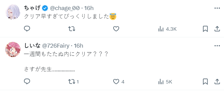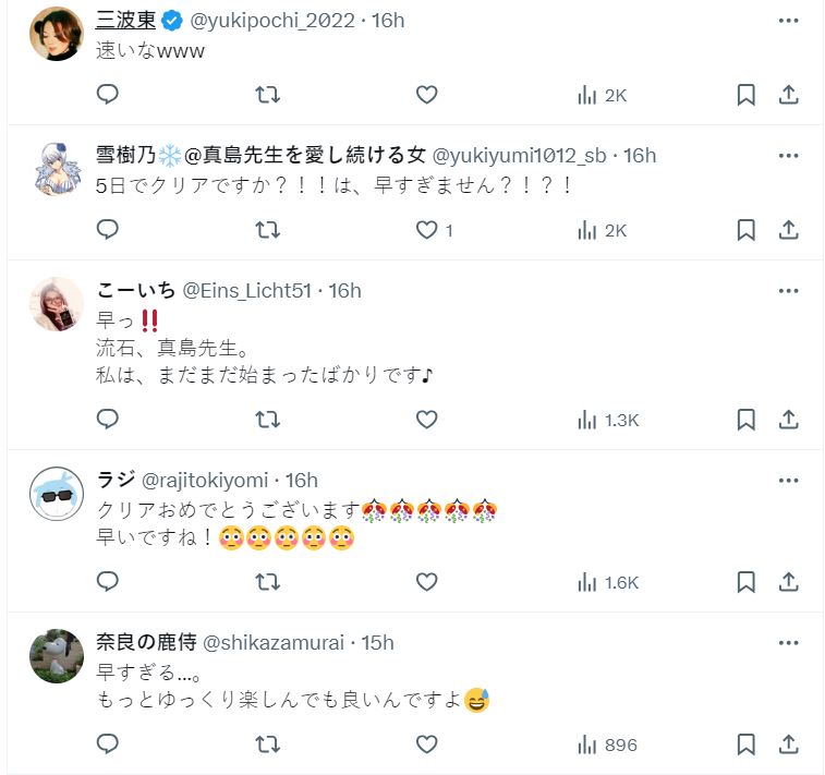 沒想到後續到 3 月 5 日發文,真島浩宣布自己已經全破關了,大讚這款遊戲真的非常優秀,也推薦大家玩起來。