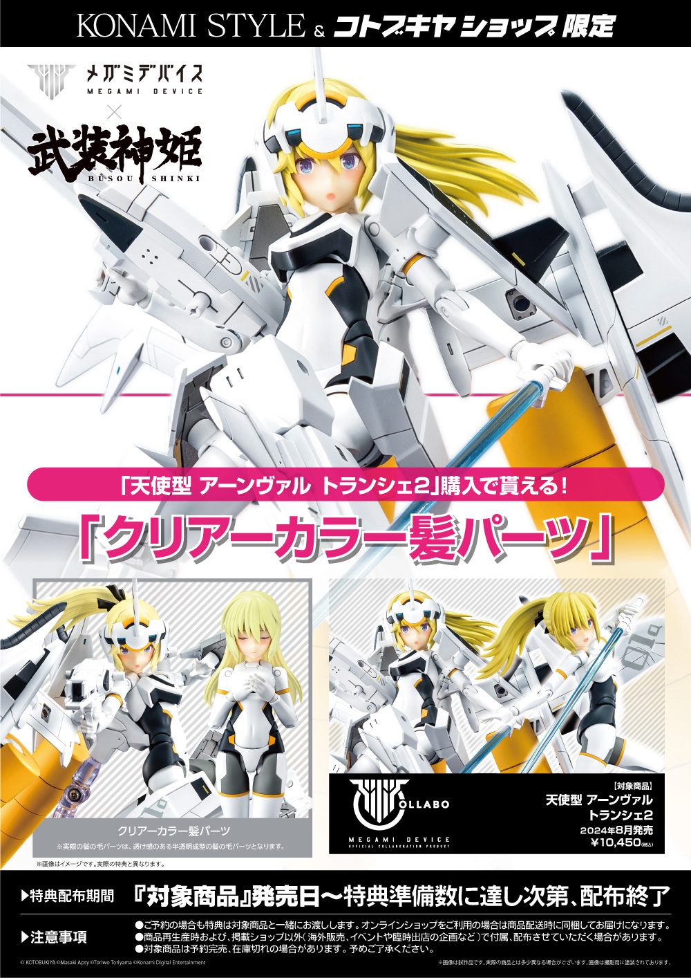 由日本模型商壽屋(KOTOBUKIYA)所發行,結合多彩機械裝備與高可動美少女素體的人氣組裝模型『女神裝置』系列,今日再度發表以《武裝神姫》為主題的最新合作商品「天使型安瓦爾 Trancher 2」預計於 2024 年 08 月發售的消息。
