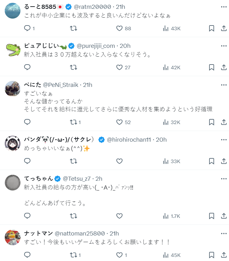 事實上在遊戲業過往薪資都並非多高,能夠透過調薪來讓整個企業被更多畢業生以及就學中學子注意,這樣的表現也獲得日本網友的高評價。