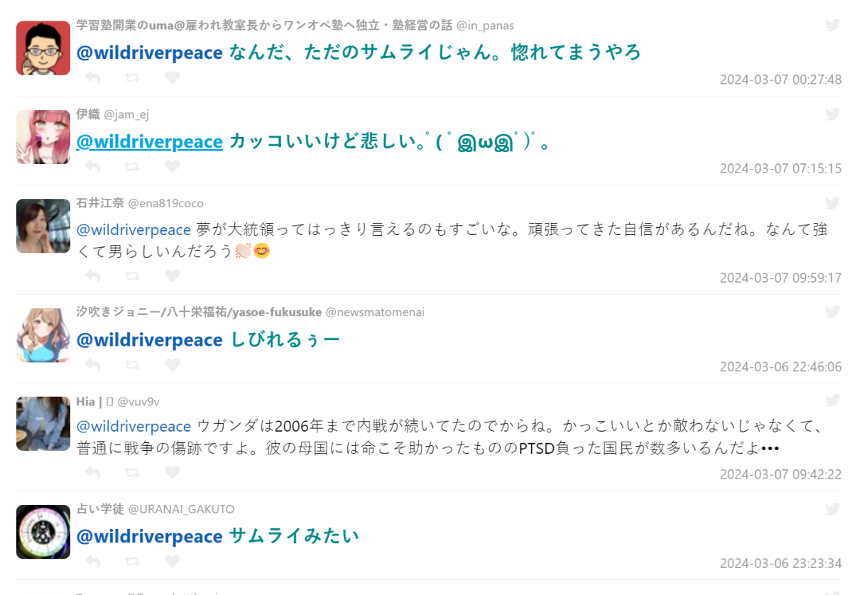 不少日本網友表示,他這樣的說法雖然聽起來有點悲傷,卻彷彿像是日本的「武士道精神」一樣,很難想像原先在他的國家因為戰亂紛爭之故,內心是如此的堅強,使一般國家國民很難想像的。