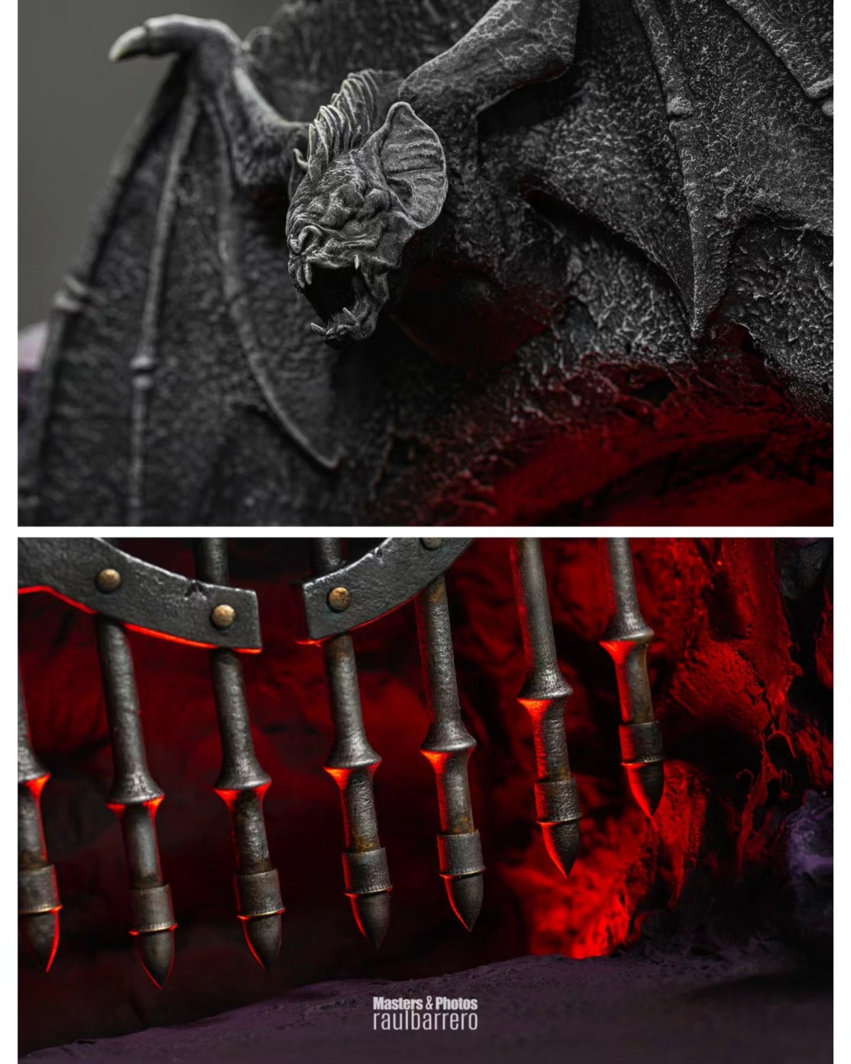 MONDO 御用攝影師 Raúl Barrero 於昨(7)日發表了首波 1/6 比例蛇山場景的全貌照片,在紫色主調的蛇山旁邊還有同樣規格的葛雷堡(Castle Grayskull),一講到蛇山,許多玩具人應該立馬會想到招牌的惡魔臉孔與纏繞岩壁的巨蛇,這款場景組不僅還原了老玩具當中蛇山的經典元素,更注入現代技術與寫實風格、將整座場景施以細緻的岩石紋理雕刻與上色,使其與 MONDO 的太空超人角色更加匹配,滾燙的岩漿更是視覺上的一大亮點,加上木橋、梯子、遍地可見的白骨......等細節,真的超級猛!而從 Raúl Barrero 發布的照片看來,這座蛇山應該也內藏的 LED 發光機構,期待完整發表啊!