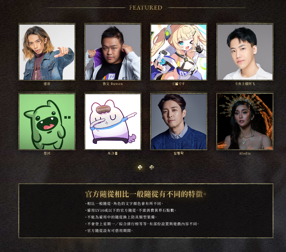 ・雇用LV10或以下的官方隨從,不需消費異界石點數。
