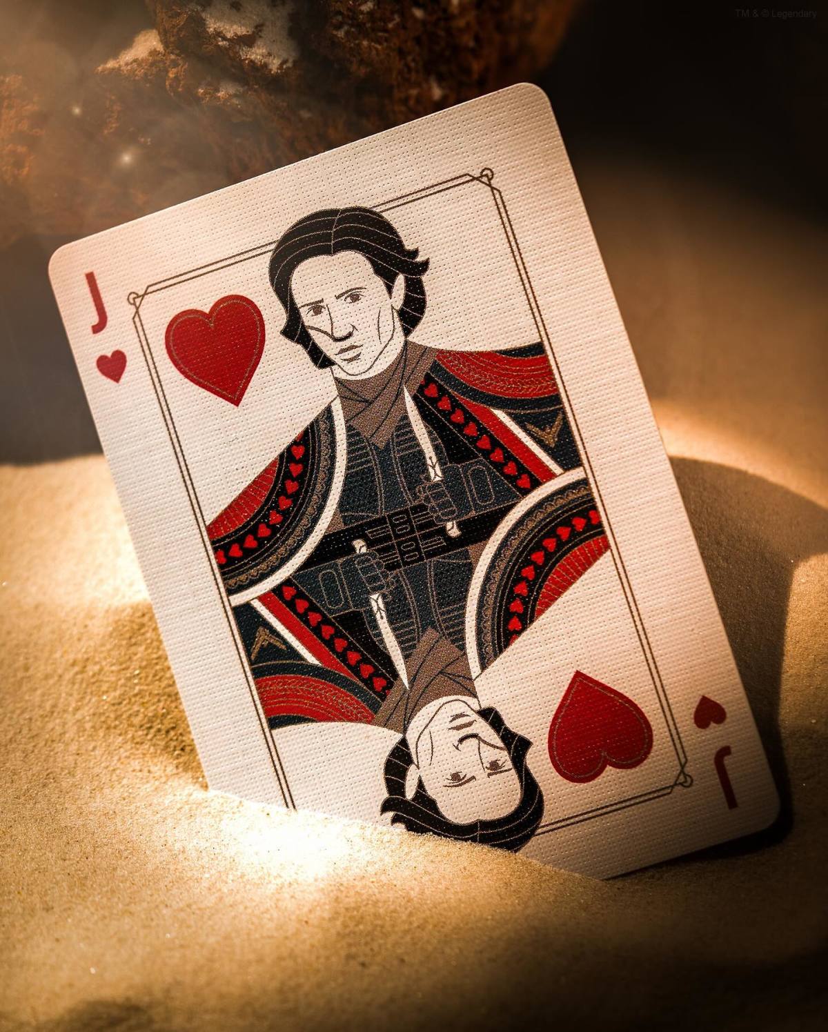 撲克牌的牌面可以看到熟悉的角色包含保羅·亞崔迪(紅心J)、荃妮(方塊Q)、雷托·亞崔迪(紅心K)......等,而小編個人認為相當有趣的是鬼牌的圖案,做為可以顛覆戰局、但也可能毀掉一切局面的鬼牌,以沙蟲為主題設計真的相當合適!撲克牌的材質是採用 FSC 所認證的紙張、植物油墨,並於美國製造。