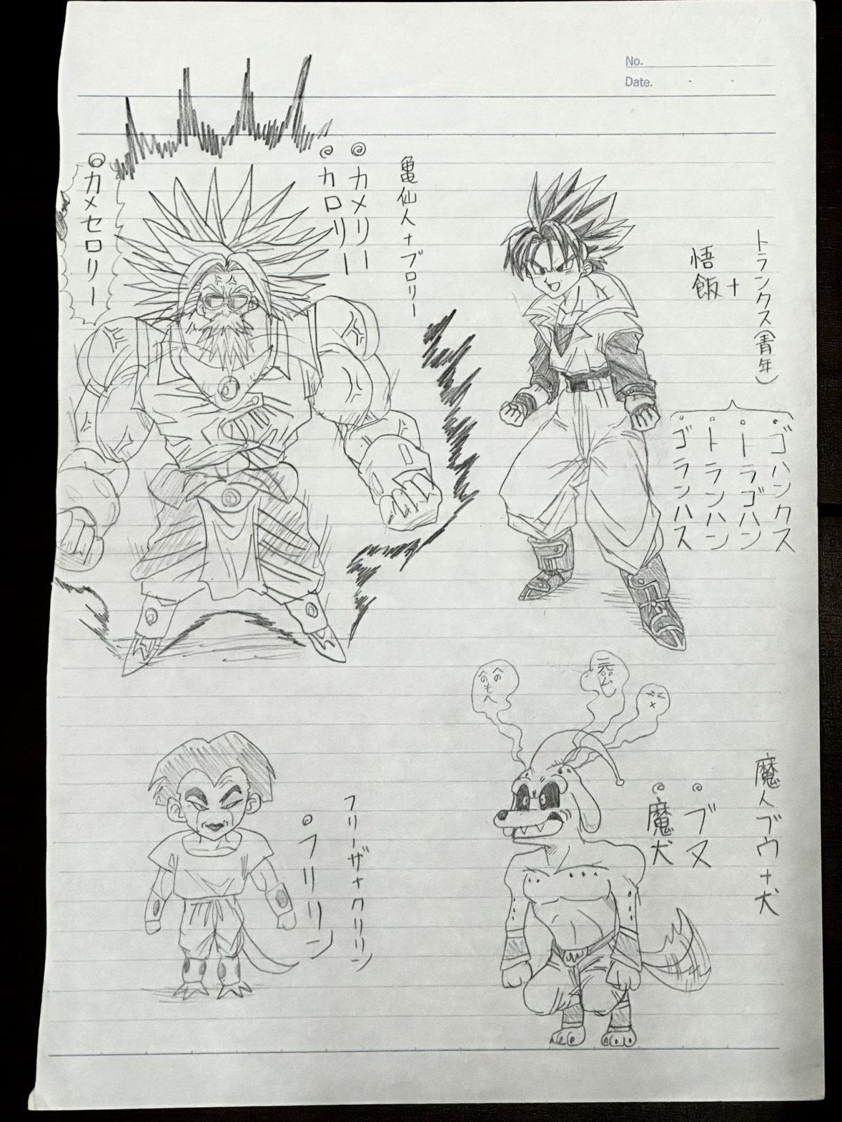矢吹老師還公開了中學時代投稿的手稿,當初《七龍珠》有個融合投稿企劃,自己當初隨意發想了一些奇怪的東西,現在來看 30 年前的自己不禁笑了出來,真的是美好的回憶。