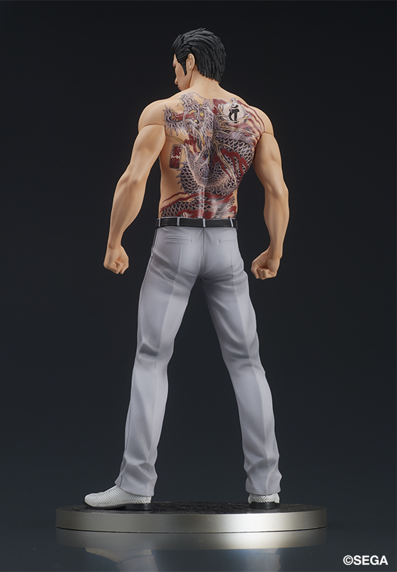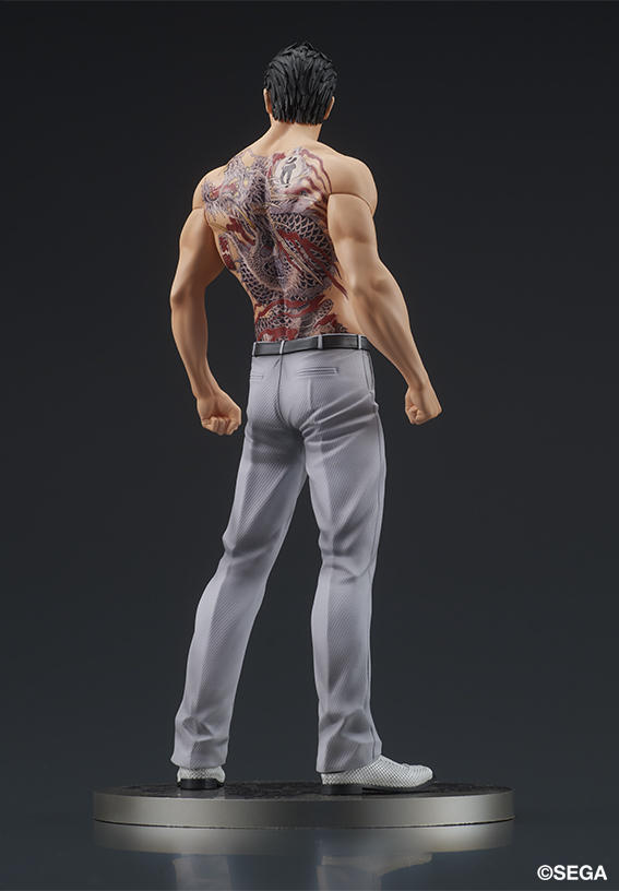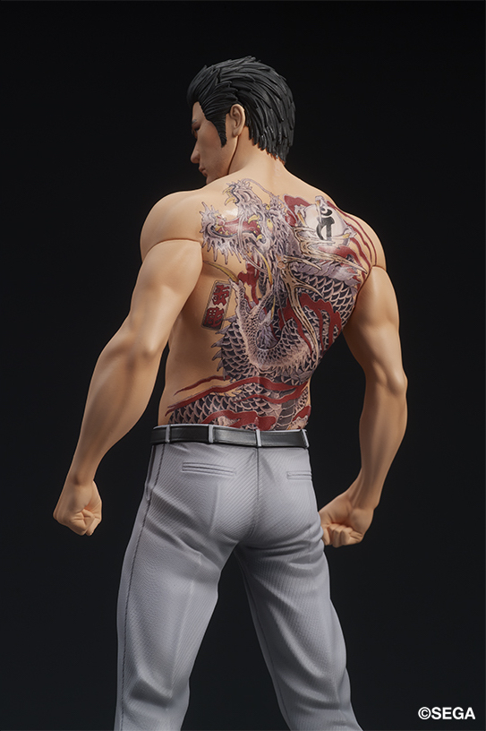 本次的「桐生一馬-激闘-」PVC 模型全高約 175mm,與先前的春日一番相同,桐生一馬在這次的「-激闘-」中呈現裸上身的造型,透過數位建模細緻的還原了作品中桐生一馬精實的身材,並細緻的還原背上由刺青師歌彫為他刺上的上古「應龍」刺青,兇狠的眼神散發出強烈的殺氣,光是站立的姿態就能感受到傳說的黑道的強勢魄力!