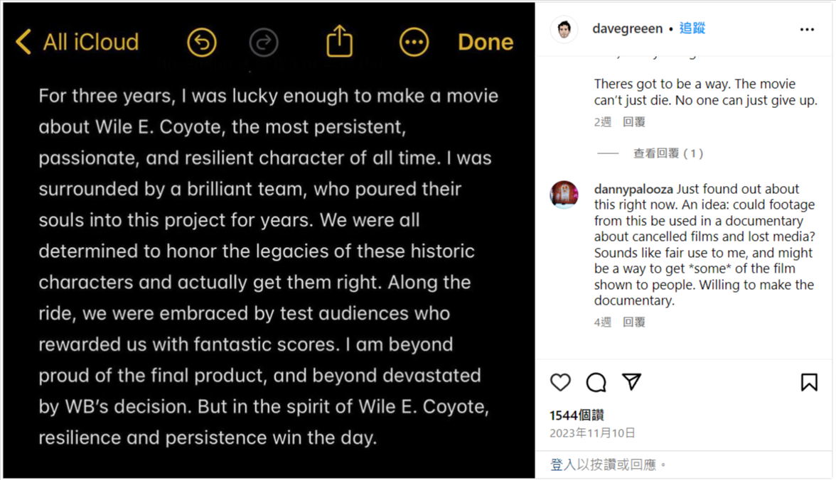 這也不是該片幕後團隊第一次對華納兄弟探索的決定發表意見,導演戴夫格林就曾在 IG 上分享過自己的想法: