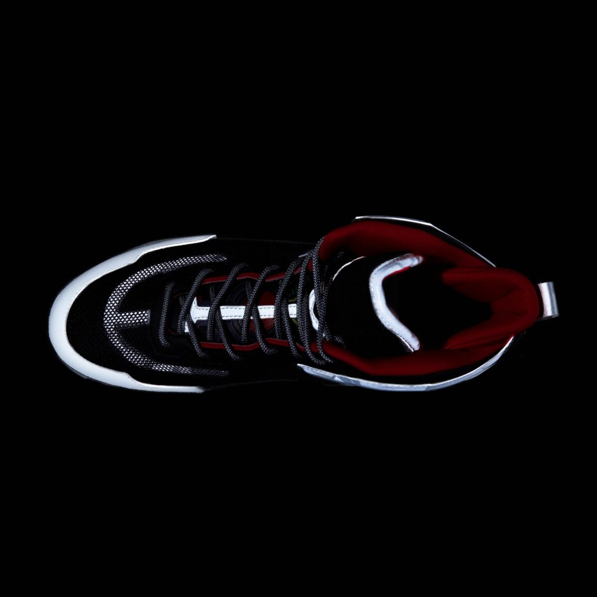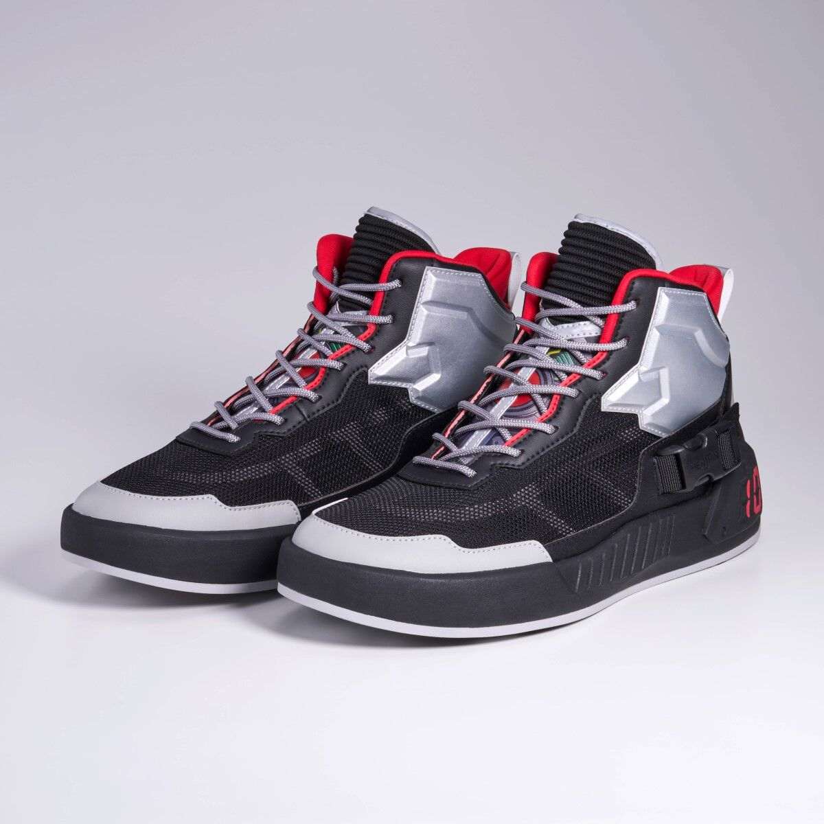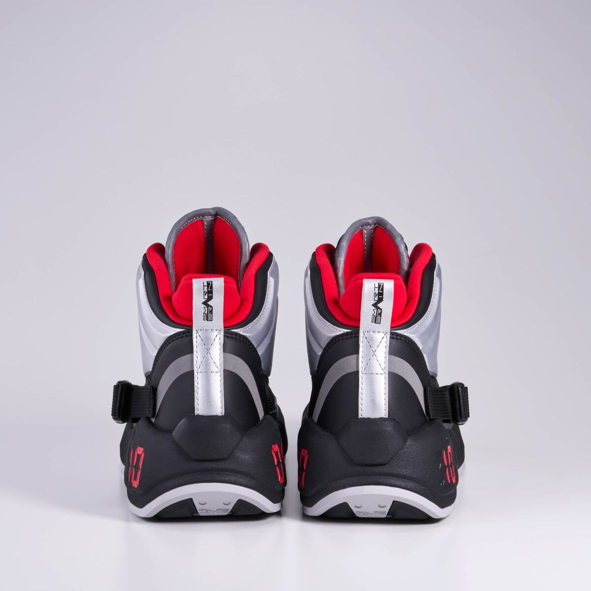 這次推出的造型球鞋,以 Faiz 加速型態的黑紅銀三色為靈感打造,鞋跟兩側有著象徵加速型態能維持的 10 秒以及結束的 00 秒數字,也附有品牌一貫的鞋身織帶與扣具。