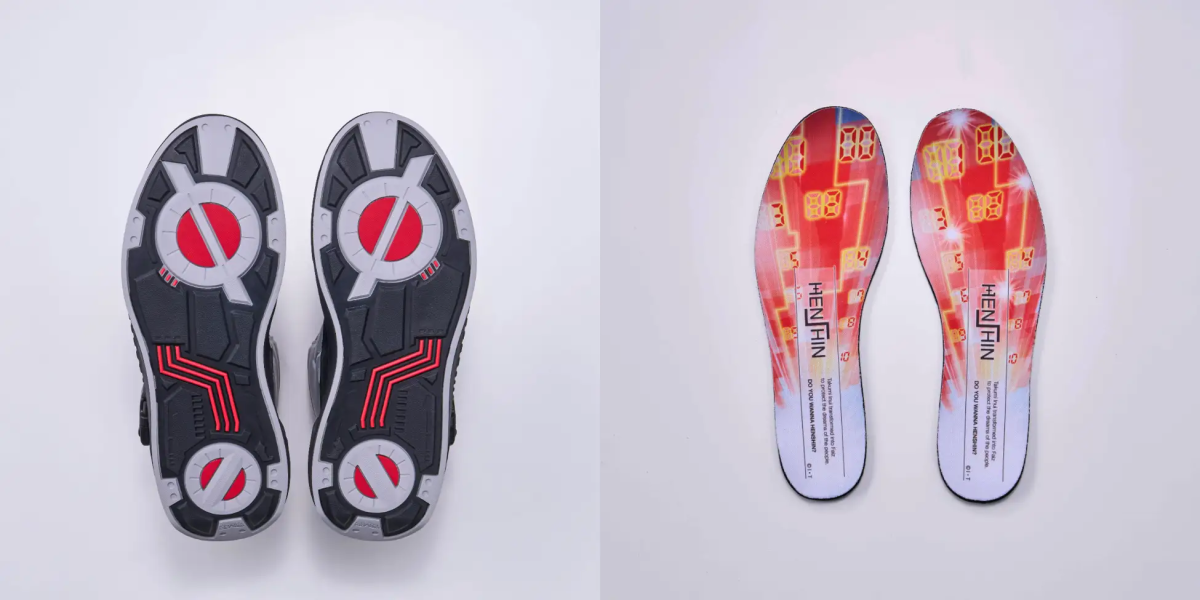 鞋底刻紋採用 Faiz 身體的結構打造而成,同樣鞋墊也有巧思,搭配加速型態變身所強調的數字畫面。