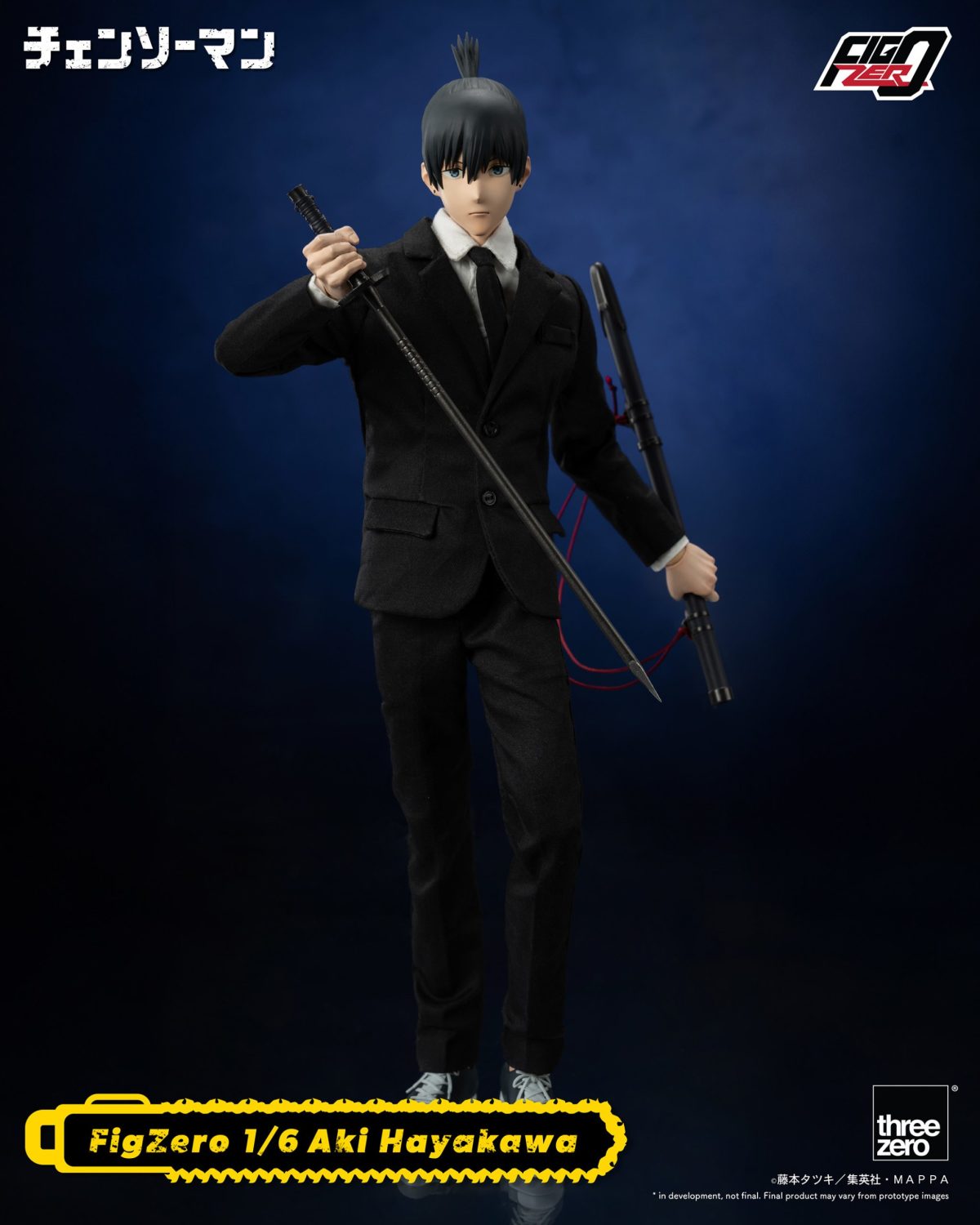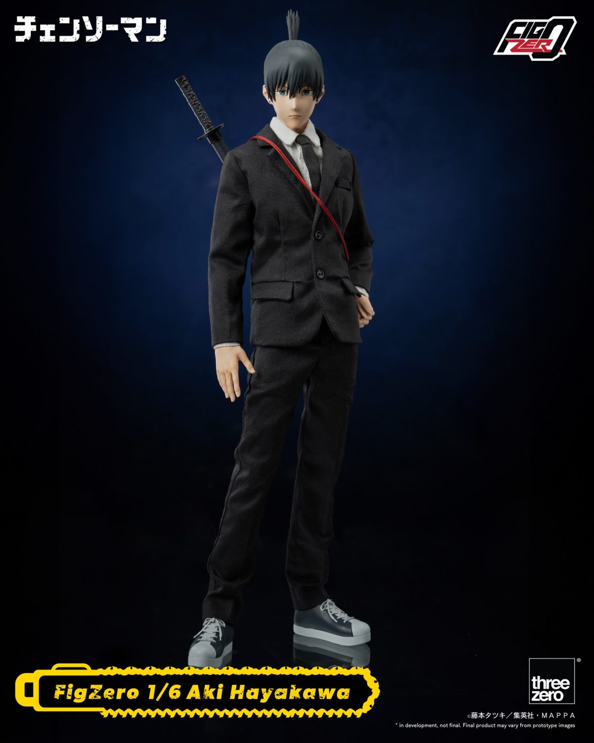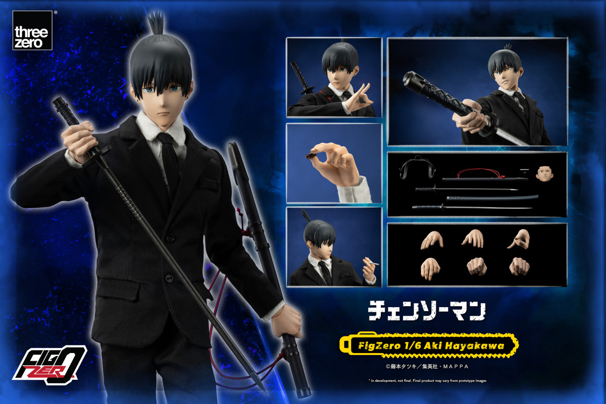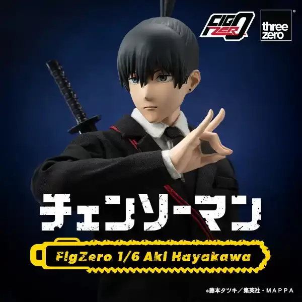 「FigZero 早川秋」1/6比例可動人偶,尺寸全高約 11.9吋(30.3公分),全身共有超過 35 個可動關節,將阿秋身穿招牌的襯衫制服、直立髮髻及黑色耳環等特徵造型還原,公安部制服及西裝外套採用布製,領帶內藏金屬線,可以隨著動作擺出適合的造型。配有兩款可更換的臉部零件(嚴肅表情/皺眉表情)和拳頭、握持武器、拿香菸、狐之手等可以替換的手勢,搭配釘狀武士刀(連刀鞘)、背心帶、一把武士刀及刀鞘、槍之惡魔的肉片等豐富的配件,賞玩各種情境的秋!