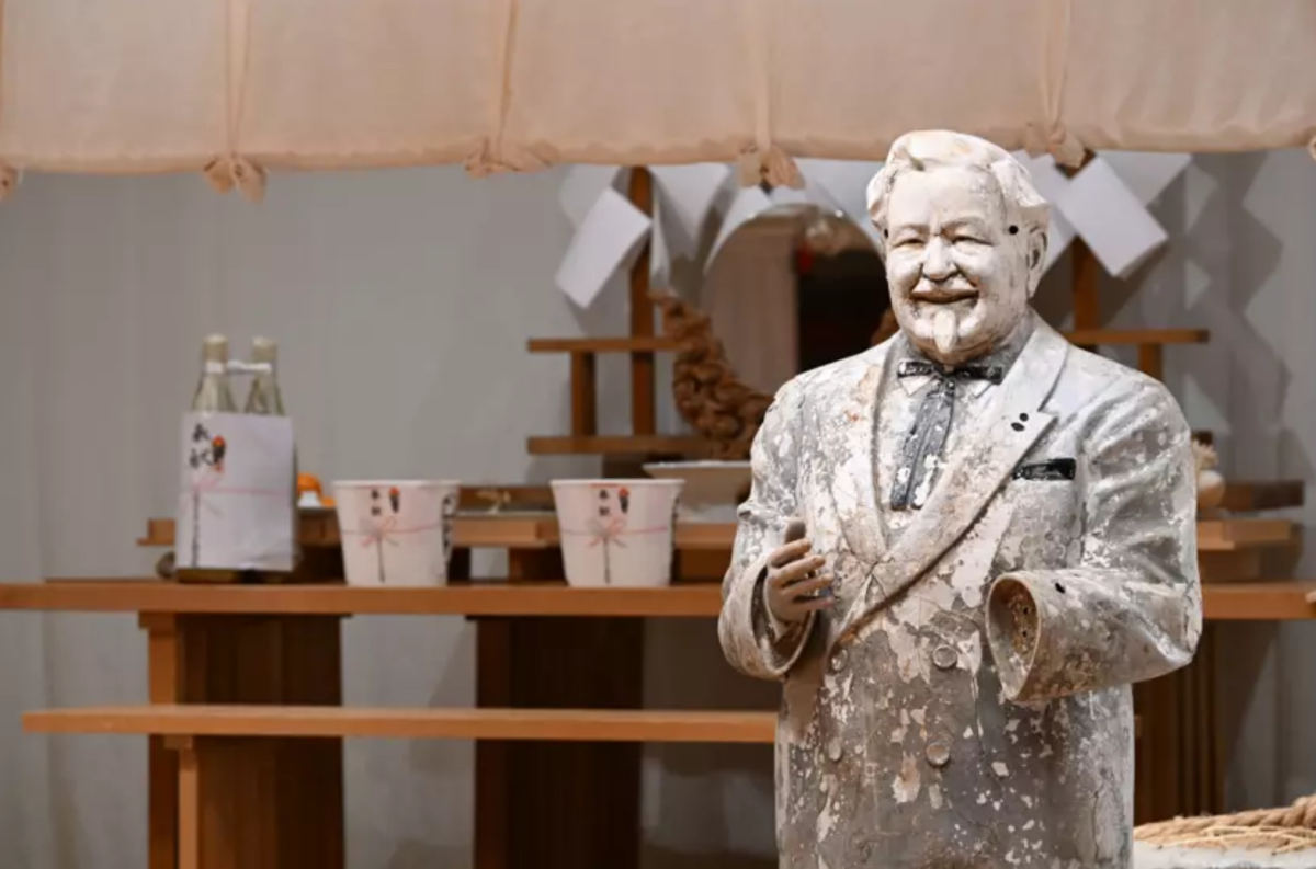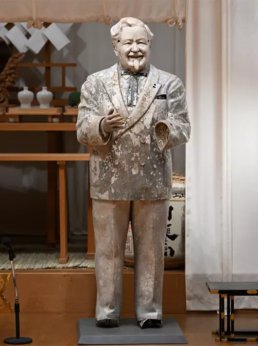 這次肯德基表示因為已經老朽化過於嚴重,決定讓這個銅像功成身退,安葬到大阪的住吉大社神社內,並且由社長判治孝之和其他高層出席了送行的活動。除了酒品之外,還提供了公司自產的雞肉作為祭品。