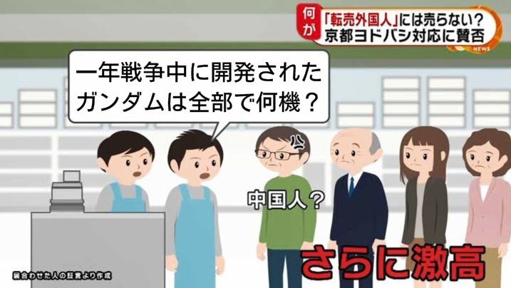 當然店家也祭出許多方針來應對,有時就算限購數量都被轉售業者突破。而知名的電器連鎖店友都八喜(ヨドバシ)就有妙招,以提問的方式來測試對方是否是真的粉絲並以防外國人掃貨,尤其針對鋼彈模型的問題,讓不少人感到驚喜又好笑。