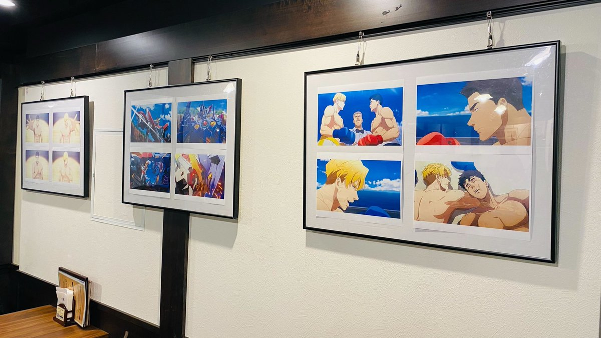 加上店內還擺上動畫的圖片當作牆面擺設,也是劇中兩人拳擊賽的場面,怎麼都是裸上半身的場景啦 www。