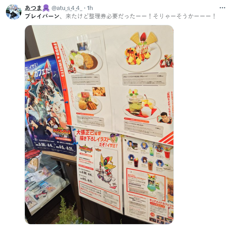 《勇氣爆發Bang Bravern》合作餐廳限定期間從 2024 年 3 月 20 日到 4 月 21 日於 CURE MAID CAFE 秋葉原店舉行,想朝聖的朋友店內會發放整理券讓顧客能依序進場,可別錯過啦 !