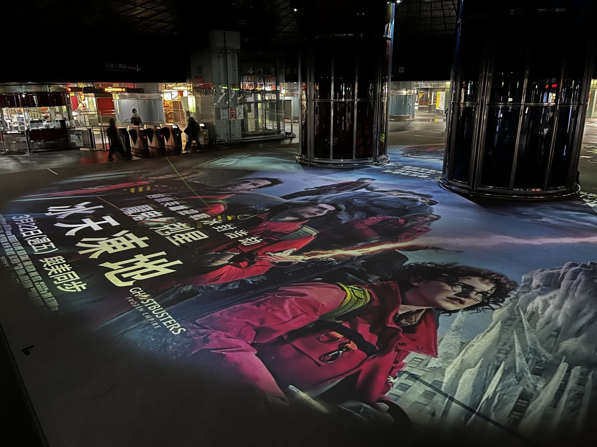 近期在高雄捷運站上演的大型光雕秀「鳳翼天翔」 , 將互動科技導入車站公共藝術 , 【魔鬼剋星:冰天凍地】也成為首部與 「穹頂之舞」雷射光雕秀合作的好萊塢電影, 藉由 4K 高解析度投影技術 ,加上繽紛飽和的色彩,在 660 平方公尺龐大的美麗島站大廳打造出磅礡的視覺響宴,小壞壞棉花糖寶寶每小時一場的「賣命」演出現正熱映中。