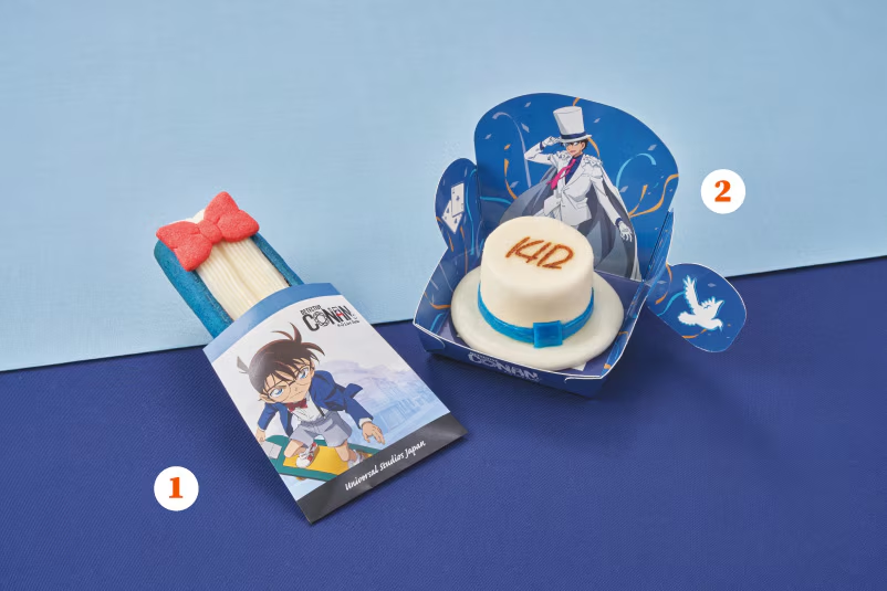 此外,也會有特色的餐點在遊樂園中可以購買,包含 : 柯南滑板造型的餅乾派、基德帽子的松露點心,以及霸氣的怪盜基德爆米花桶。