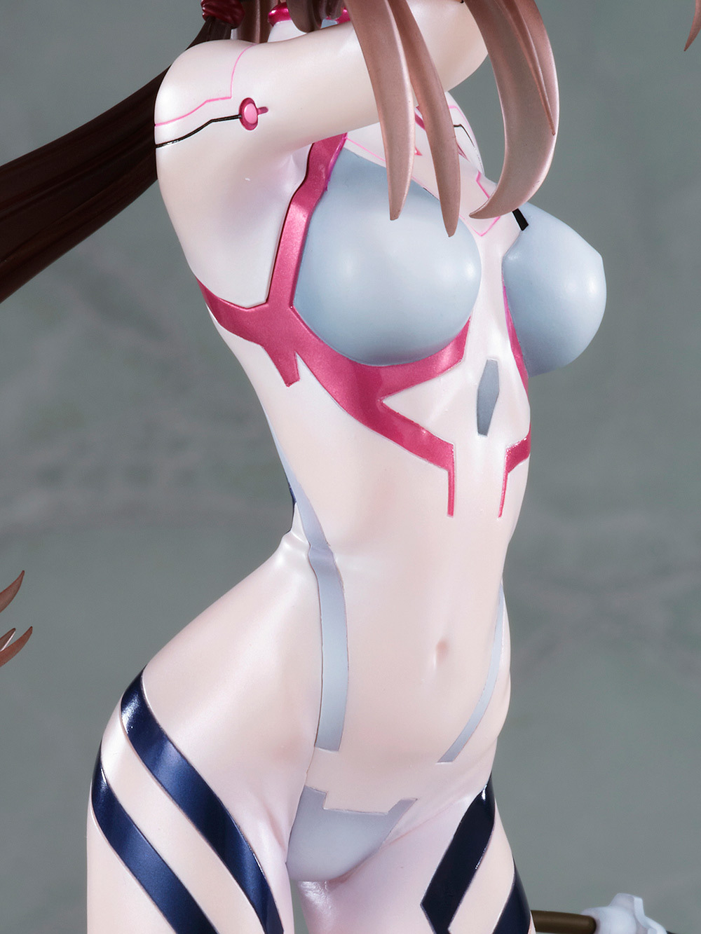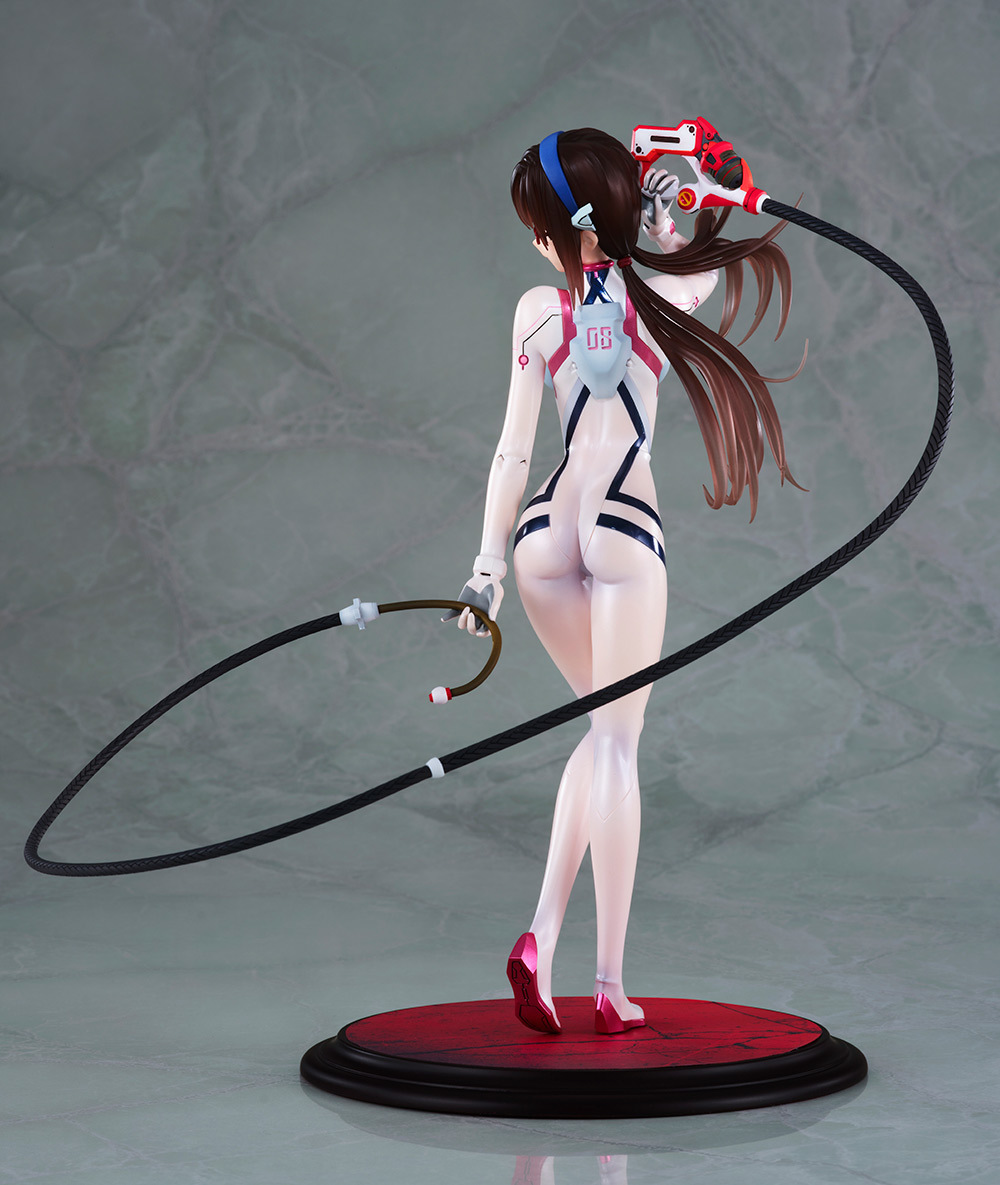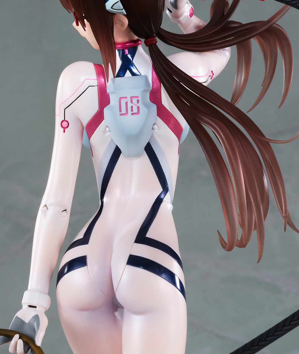 Wanderer「真希波·真理·伊拉絲多莉亞斯 1/7比例模型 」,尺寸全高約 24 公分,以真希波在《終》劇中穿上「深深度下潛用耐壓試作作戰服」進行最終作戰的造型為基礎,由 Wanderer 原創的回眸撩人姿勢展現海咪咪迷人的身材曲線,尤其是臀部的肉感!為了營造出作戰服貼身輕薄的笑果,除了採用珠光色澤的塗裝之外,更保留了肉體透出的淡淡膚色,讓整體具有獨特韻味。飄逸的頭髮零件採用透明材質,漸層表現髮尾的透光感。手裡拿著經過設計再現的「EVA改8號機武裝」零件,臉上的笑容讓人感受到真希波成熟、從容的態度!