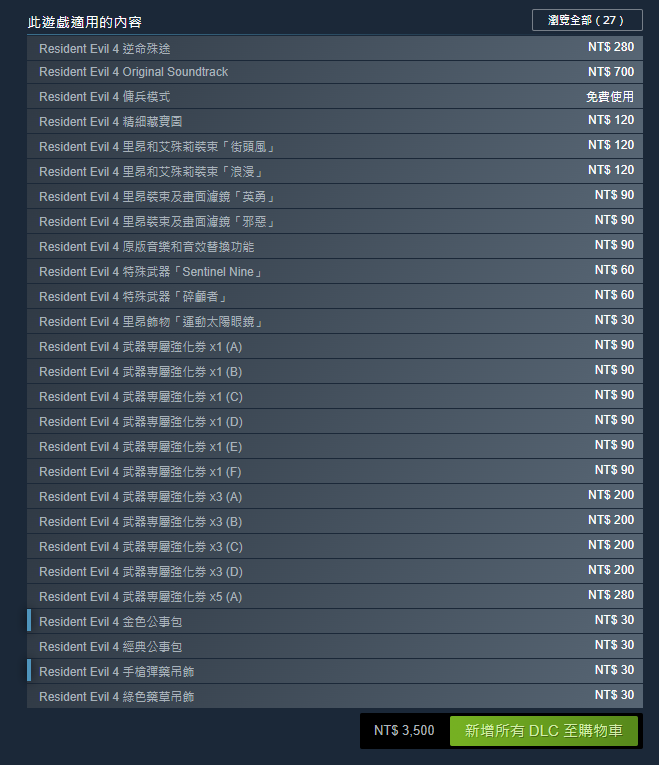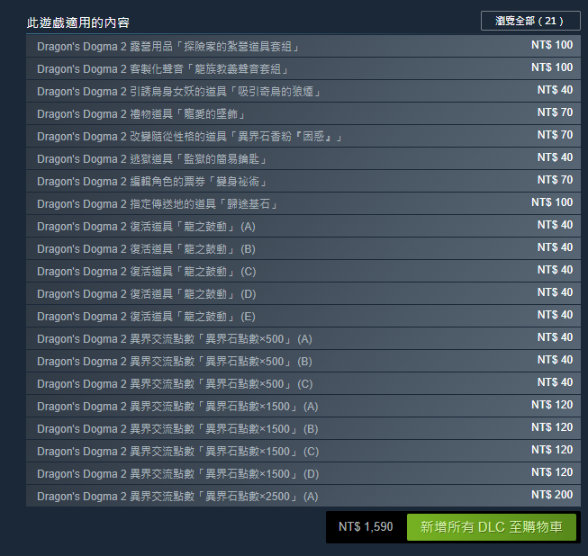 不過,事實上真如抱怨玩家所說的嗎?對於這類額外花錢的微交易,《龍族教義2》也並非是CAPCOM所實施的第一款遊戲。一樣打開Steam頁面檢視,可以看到包含《惡靈古堡4 重製版》(バイオハザード RE:4)、《魔物獵人 崛起》(モンスターハンターライズ)...等,同樣也內含多項的微交易。