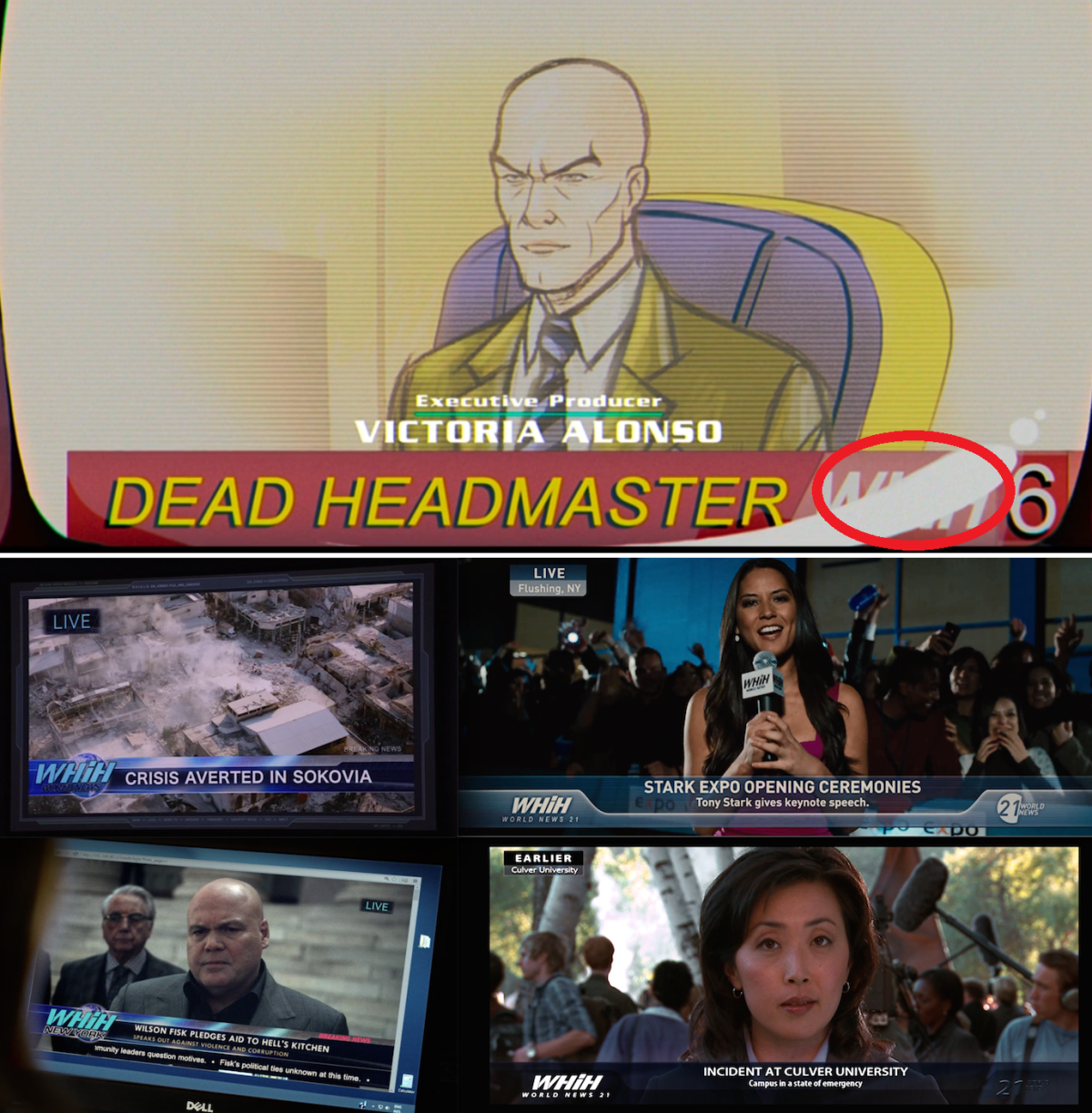 報導X教授遭到殺害的新聞台,是原創於 MCU 的 WHiH 頻道,在不少 MCU 電影、影集中多次出現。