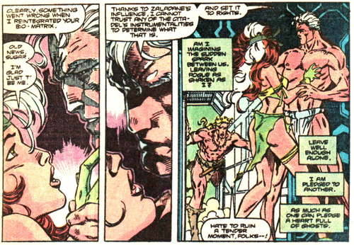 在1991年《Uncanny X-Men #274》中,萬磁王打算將蠻荒之地(Savage Land)打造成變種人的烏托邦,短暫失去超能力的小淘氣也跟著他來到這裡。隨著一陣子的相處,小淘氣發現了萬磁王良善的一面,於是兩人陷入曖昧。不過,當萬磁王殺死了蠻荒之地的首領札拉旦恩後,小淘氣重新思考了對他的感情。