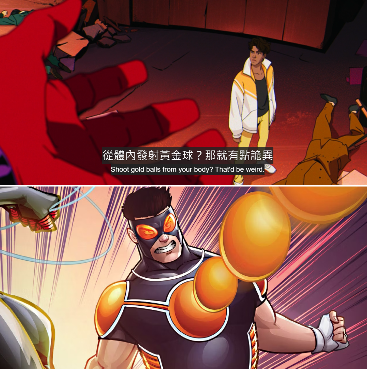 10. 黃金球 太陽黑子在「危機室」時,歡歡問他的超能力是什麼,提到了「從體內發射黃金球」這個猜測。事實上「黃金球」(Goldballs)是漫畫中一個變種人之一,本名 Fabio Medina,他的變種能力就是從身體發射出黃金色的球。