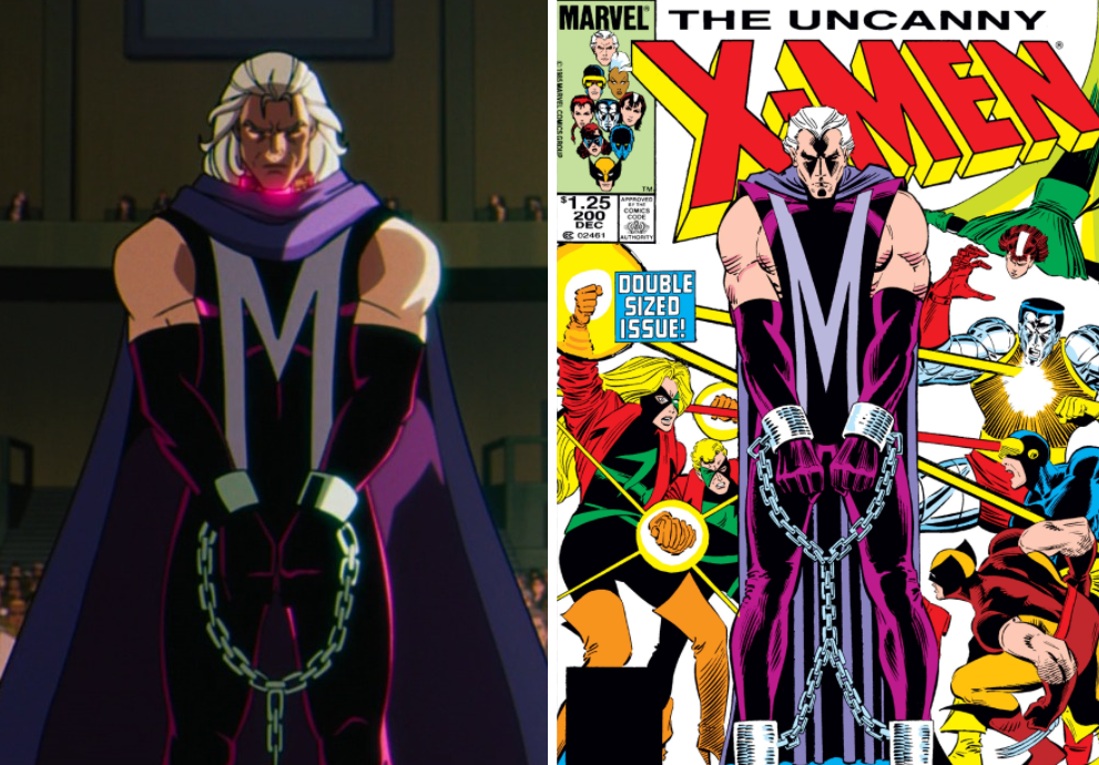 16. 萬磁王的審判 萬磁王被聯合國軍隊包圍,並自願投降接受審判。這時他被上銬的形象出自於漫畫《The Uncanny X-Men》#200 的封面。另外,《萬磁王的審判》也是漫畫中時常出現的情節。