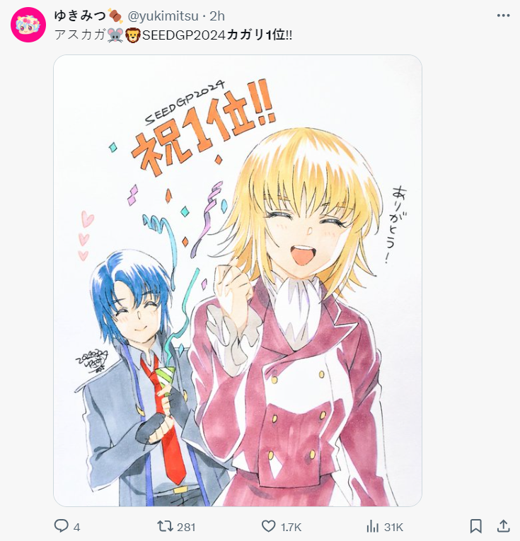 這次最讓人驚豔的卡佳里也在晚間成為 X 趨勢關鍵字,也不少繪師在 X 上分享祝賀文,可見卡佳里奪下冠軍給粉絲的震撼程度,不知道各位覺得這樣的結果你是否滿意呢 ?