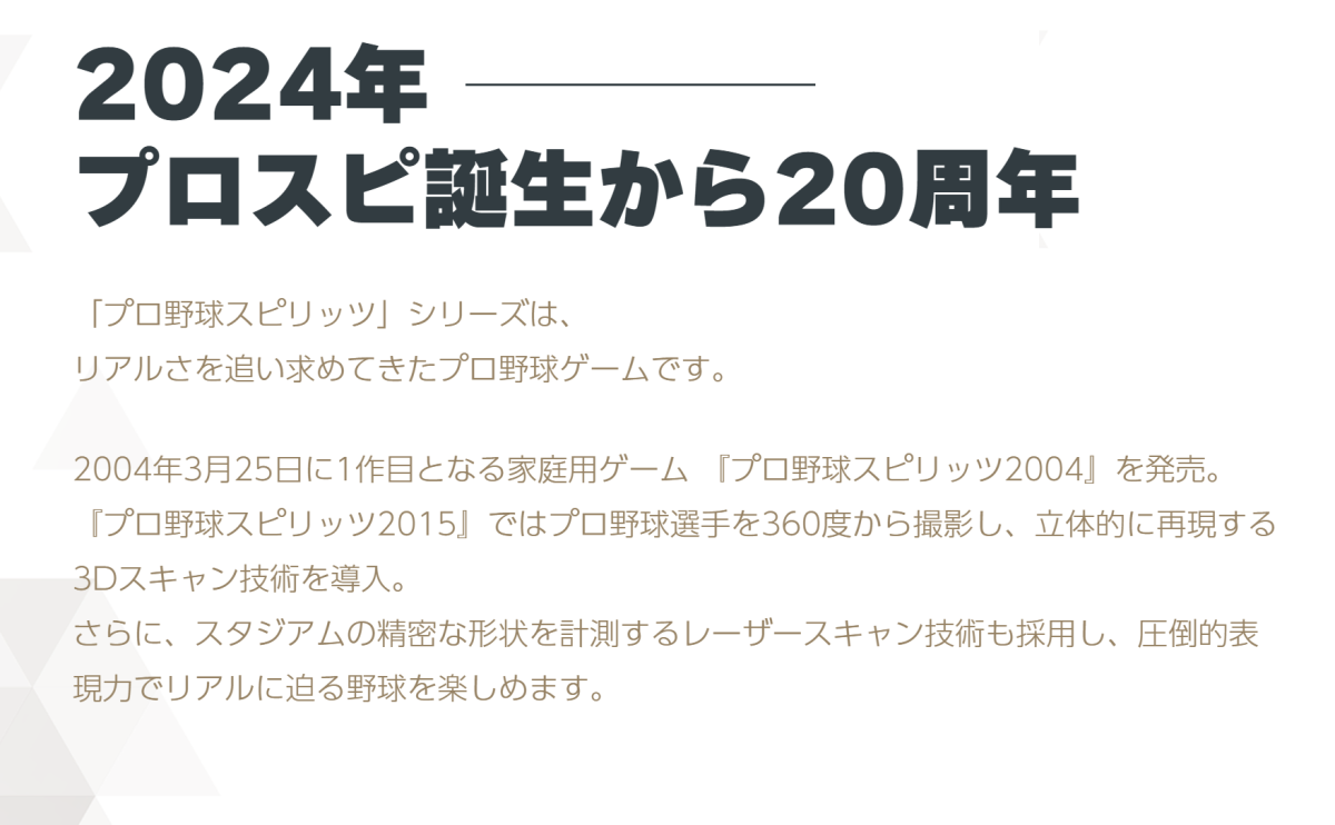 在今日 ( 3/25 ) KONAMI 也正式揭露,最新作《野球魂 2024-2025》( プロ野球スピリッツ2024-2025 ) 確定發行,也是系列 20 周年的作品。目前預定 2024 年上市,目前公布將登上 PS5/Steam 平台。