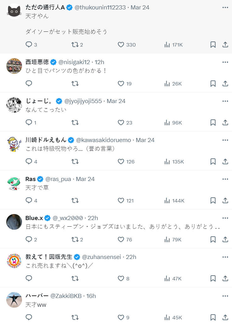 推主的創意大受好評,有人覺得大創應該直接賣一組 Set 了,更有網友直呼推主根本是 Steve Jobs,這 idea 真的是太天才了 !