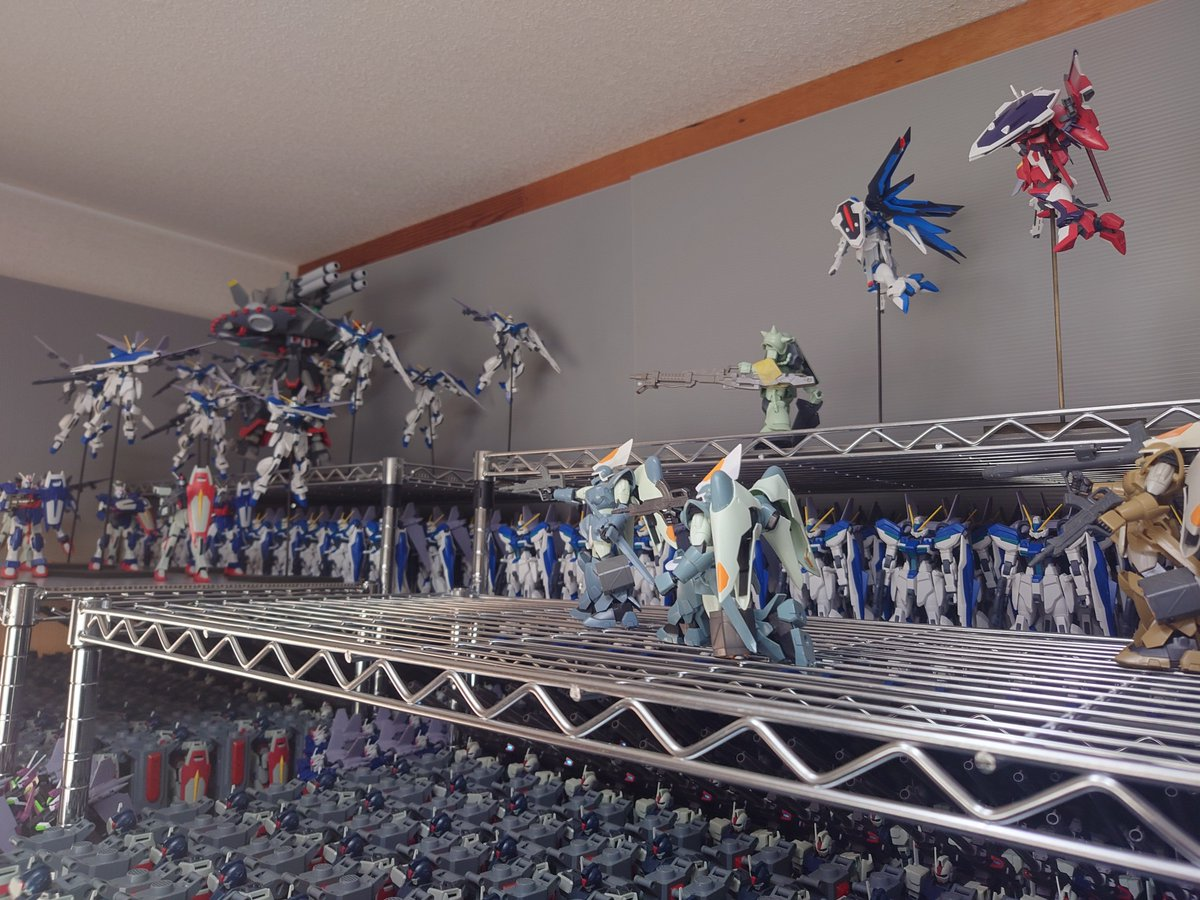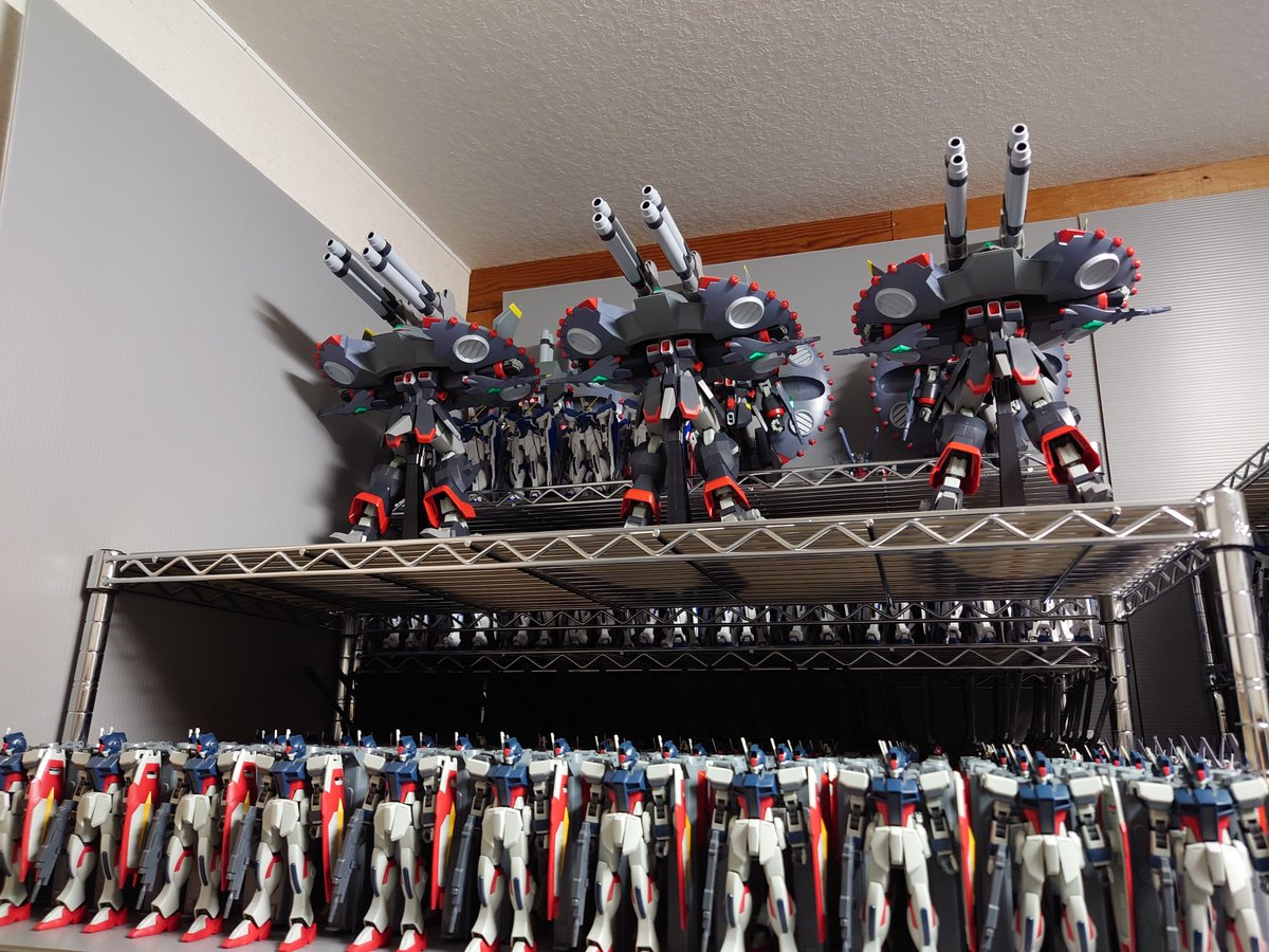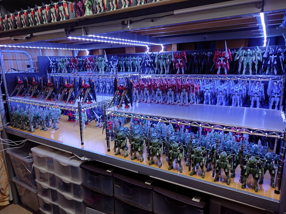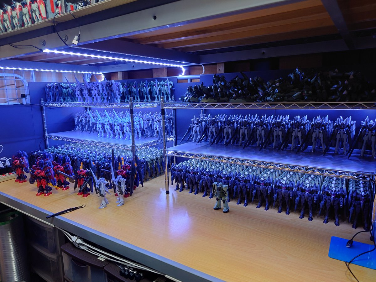 近日日本 X 上一位推主刃影 デストロイ生産中(@C6UoYqRYwMUMQHw)分享了自家收藏,他在自家擺設了大量量產機的模樣,配上層架的展現有如作品中軍隊出擊的樣貌,十分壯觀,不只是財力,連組裝的動力與機體執著都讓人感到咋舌。