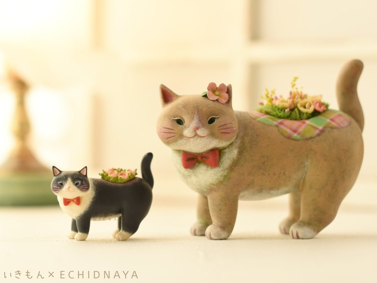 這款商品的創作者是來自創立 ECHIDNAYA 品牌的日本造形作家 Echidna Aya,出身於橫濱美術短期大學設計科的他擅長以小型植栽結合動物藝術為主題,從盆器造型的設計、原型雕塑、塗裝到種植為止,所有步驟都投入了滿滿的時間與愛情一個個製作。或許每款作品都只能少量推出,但也希望這些能成為心靈養分的美妙造型能夠傳遞給更多人。此次轉蛋化的「胖嘟嘟貓咪(ぽってりにゃんこ)」花盆系列便是 Echidna Aya 的代表作之一。