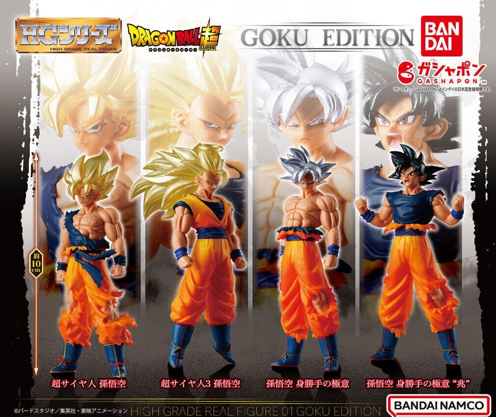 第一彈「HG七龍珠01 GOKU EDITION」以孫悟空為主角,收錄:超級賽亞人悟空、超級賽亞人 3 悟空、悟空無我極境、悟空 無我極境兆 4 種悟空,頭髮零件使用透明珍珠色,服裝上的漸變塗裝也相當有質感,撕裂道服也細緻再現!