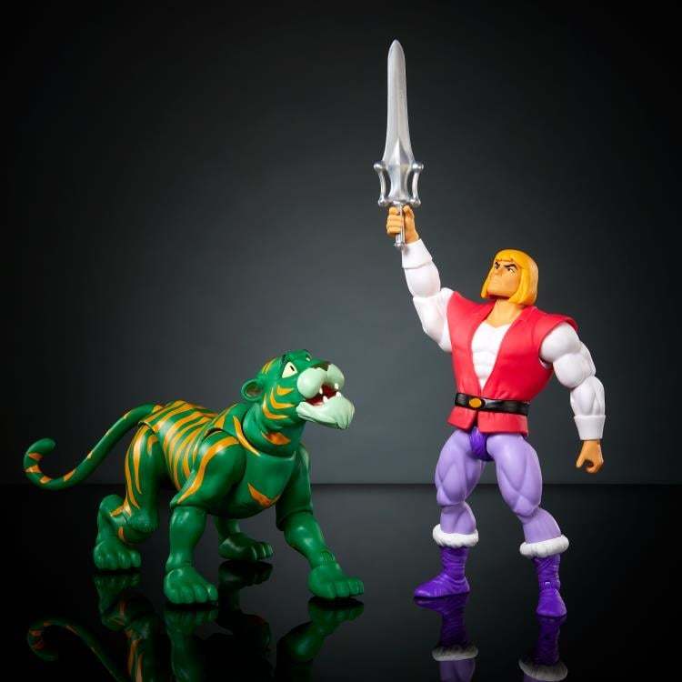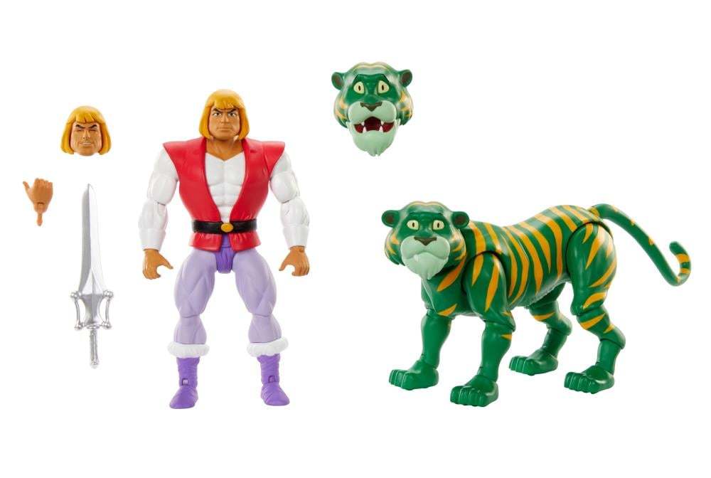 本次的「太空超人:起源 亞當王子與膽小虎」套組重現了亞當和膽小虎變身前的造型,還原亞當王子經典的粉紫配色服裝,動畫版的膽小虎也首次以多關節可動的形式在此系列登場!兩人皆附有替換頭雕,膽小虎的是嘴巴張開看起來有些膽怯的表情,而亞當王子的則是每次推出這個造型都少不了的經典迷因「HEYYEYAAEYAAAEYAEYAA」瞇眼笑表情!配件部分也附上了真的不知道平常都藏在哪裡的神劍,讓亞當可以高舉大喊那句經典的「萬能的天神,請賜予我神奇的力量!」