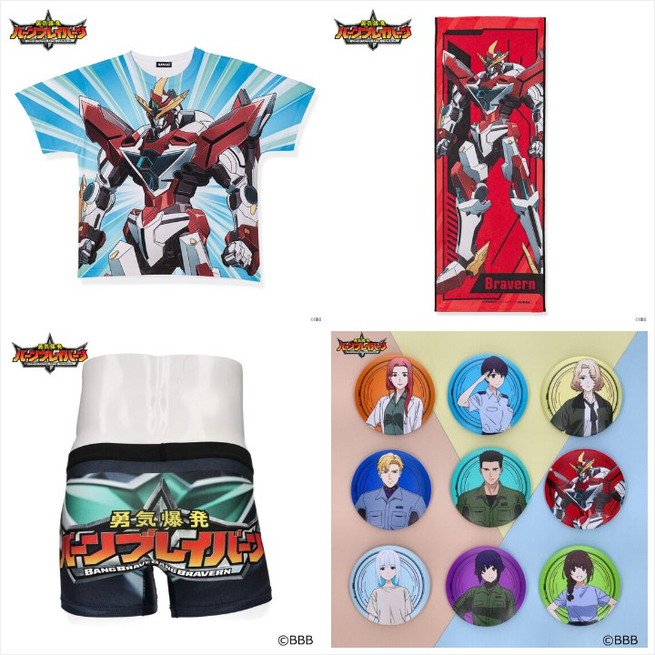 日本萬代旗下專門推出角色主題服飾、生活週邊的 BANDAI FASHION COLLECTION(バンコレ!),宣布推出剛播畢最終話的 Cygames 原創機甲動畫《勇氣爆發Bang Bravern》(勇気爆発バーンブレイバーン)商品,釋出包含 : 衣服、毛巾、胸章以及最引起話題的四角內褲,目前已可於日本萬代 PB 網站預購。