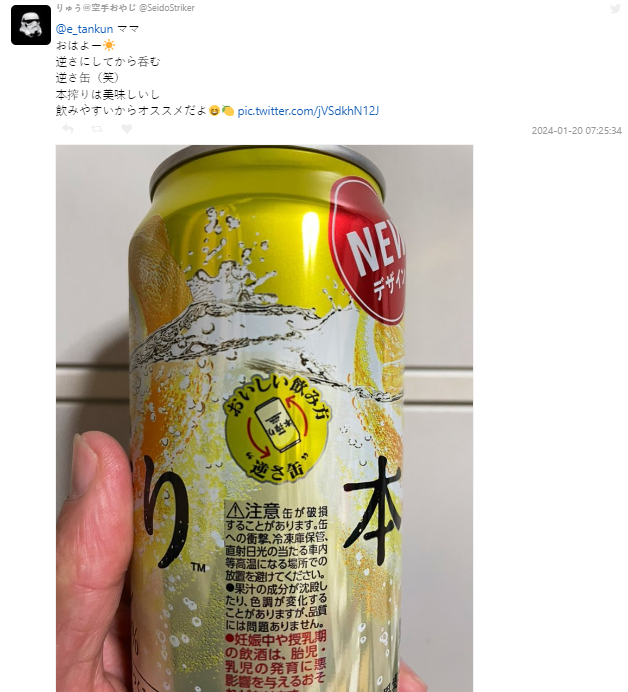 不過近期在日本 X 上,有推主提出疑問,自家附近的超市在飲料區都特別將「鋁罐飲料倒放」,由於是全部都長這個樣子,好奇到底是出自怎樣的原因,是不是有其奧妙在,在網路上尋求解答。