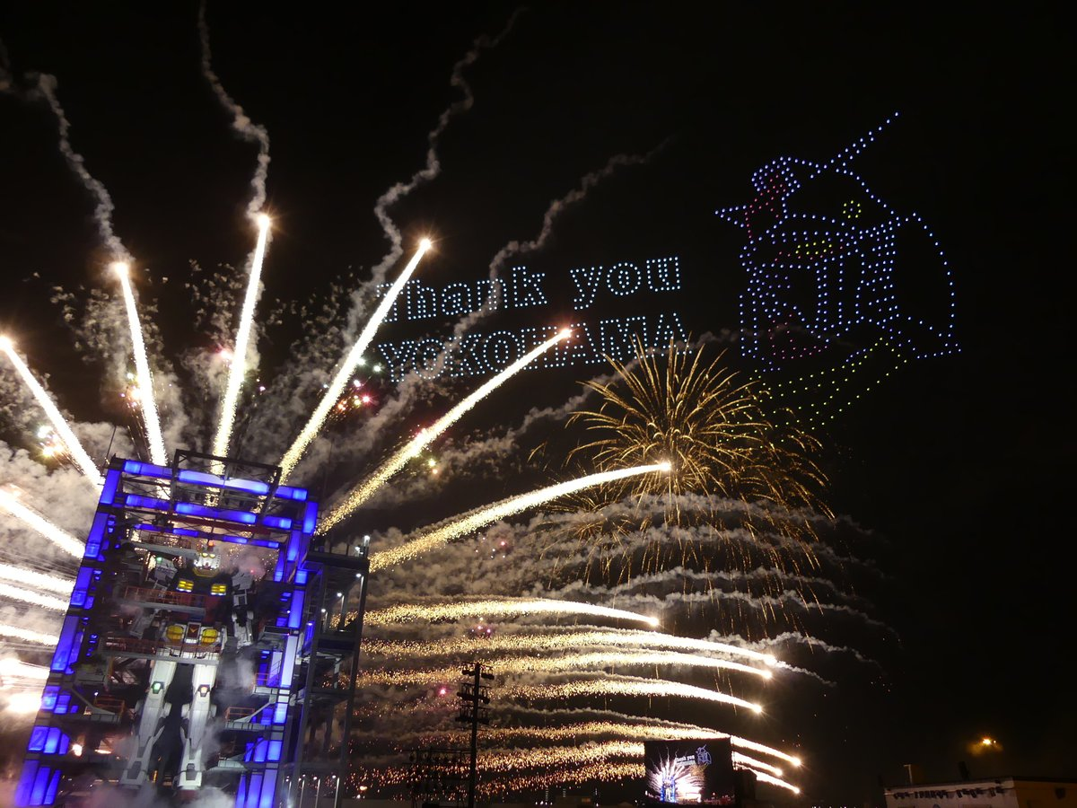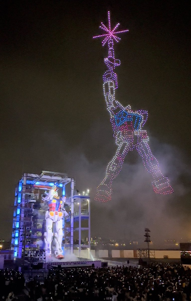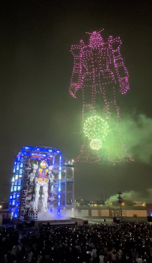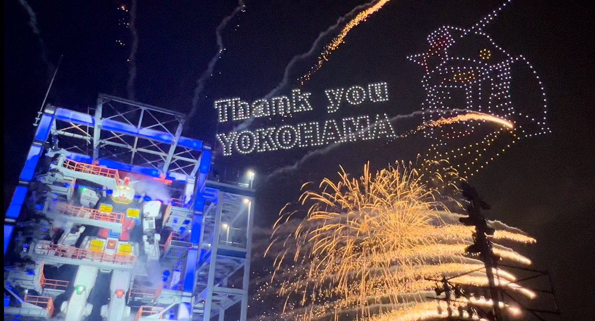 今天是最後一天,X 上滿是到現場朝聖告別的粉絲,官方也舉辦活動,讓這架實物大的鋼彈在大家的簇擁下華麗落幕,除了過往常看到的燈光秀以及活動展示,更有煙火綻放、以及無人表演在橫濱的天空,留下最後的帥氣身影。
