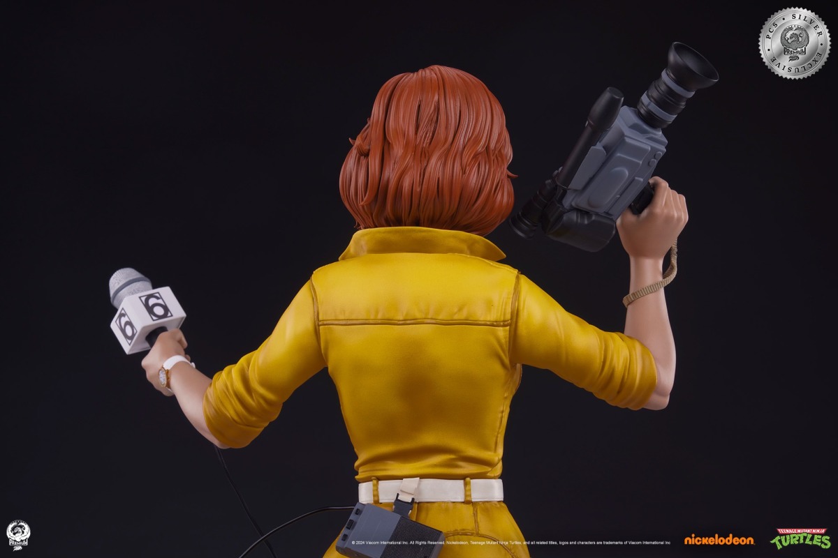 艾波·歐尼爾是一名富有正義感的新聞記者,同時她也是忍者龜們最可靠的人類盟友之一,經常會提供神龜兄弟們一些有用的情報,在 1987 年的元祖動畫中是以一身黃色工作服的造型登場,雖說情報才是艾波的最大武器,但在電玩《忍者龜:許瑞德的復仇》中,玩家可以操控艾波並以手上的報導器材給予敵人華麗的沈重打擊!本次以 1/4 大比例雕像化的艾波高約 45.7 公分,再現了那套經典的工作服,並讓她雙手拿持著第六頻道電視台新聞部的麥克風、攝影機,與麥克風以線材相連、掛在腰際的小型錄音機也考究還原。