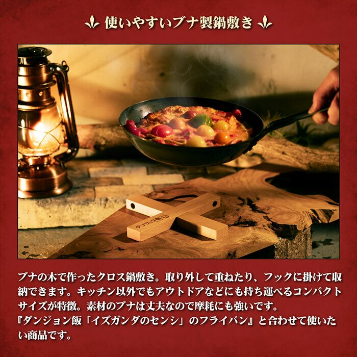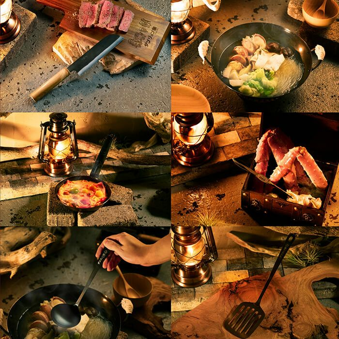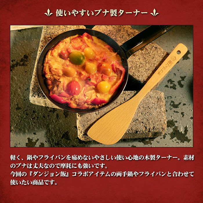 「村の鍛冶屋」以職人工藝的鍛造廚具為主軸,推出包含鍋碗瓢盆以及刀具的商品給喜愛烹飪的朋友。來自三条市的「村の鍛冶屋」和其分支「TSBBQ」,也是擅長生產不銹鋼露營裝備,與《迷宮飯》的性質非常吻合。