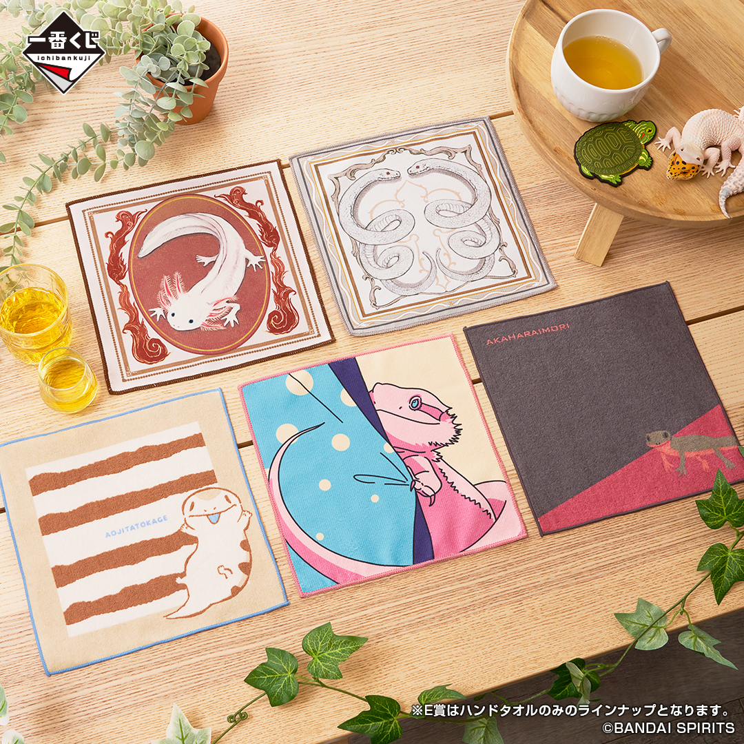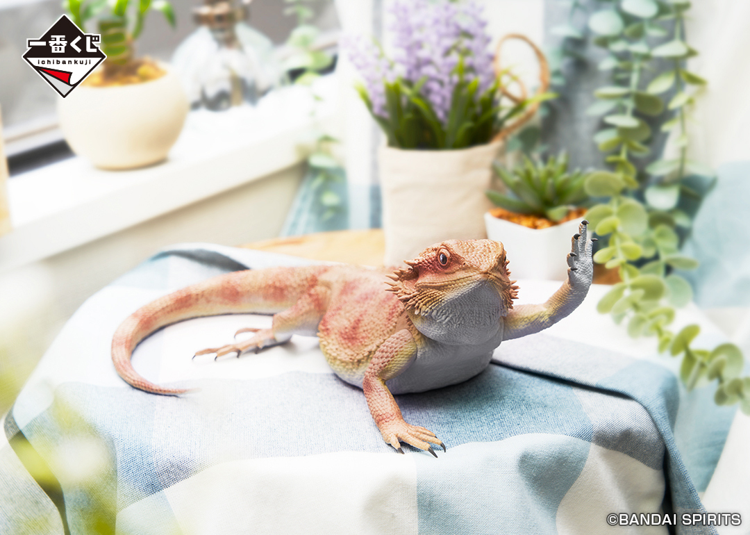 「一番賞 爬蟲類&兩棲類~Tiny Friends~」,收錄了人氣爬寵的模型:A賞 鬃獅蜥、B賞豹紋守宮~脫皮中~,仔細再現身上的棘刺和鱗片等生物細節,手爪與水亮的眼神都栩栩如生地生動呈現!另外還有 散疣短頭蛙造型屁墊和爬蟲類頭部磁鐵等趣味的周邊商品,另外還有毛巾、貼紙、透明文件夾、橡膠系列等,最後賞更是超級可愛的鬃獅蜥 揮手ver.!絕對讓喜愛爬寵的各位大興奮~~