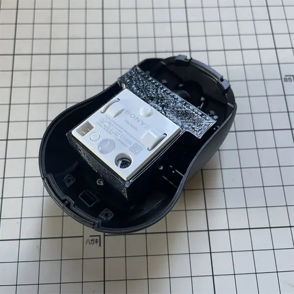 最根本,他在原本的滑鼠中,放入 SONY 的互動「核心方塊」TOIO,並且自行設計 3D 列印的夾具來固定。並且自行設定 program,讓 Playstation 5 的手把能夠控制遠端的 TOIO,由於 TOIO 上有兩個輪子,控制器的 L 搖桿用來移動左輪,用 R 搖桿來移動右輪,所以可以像遙控車一樣遊玩。